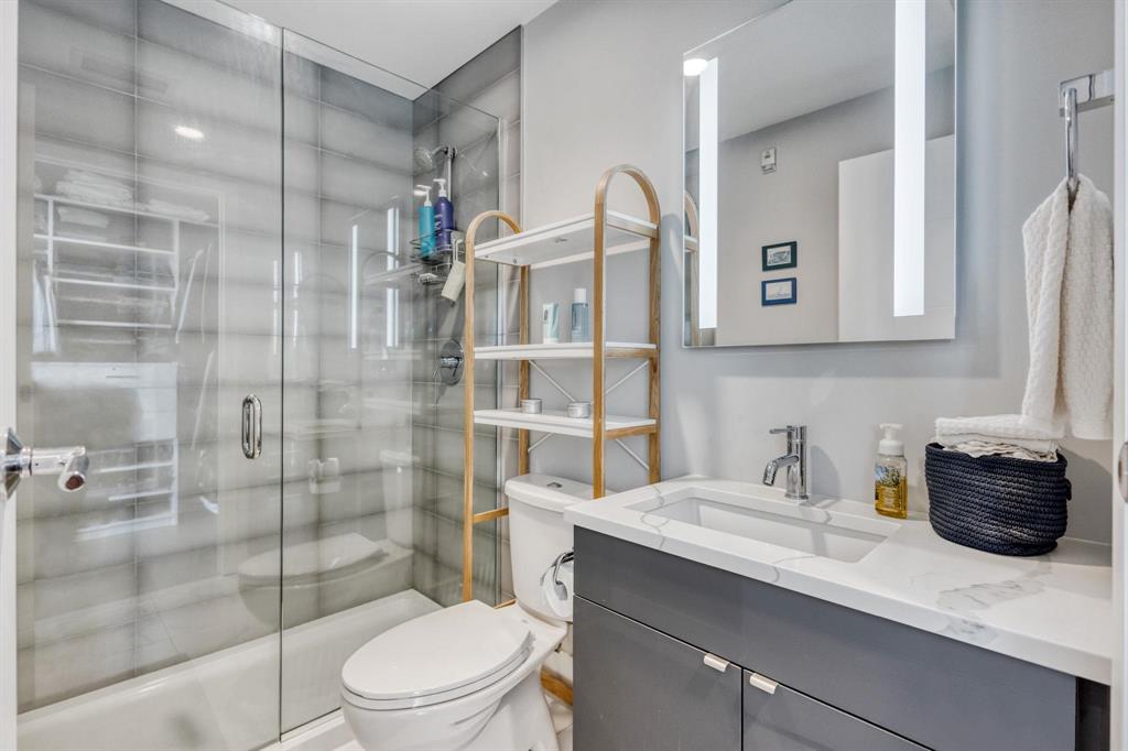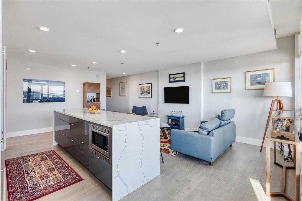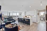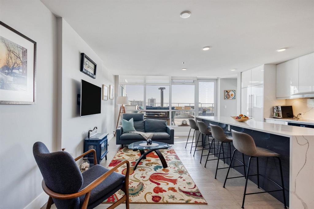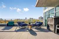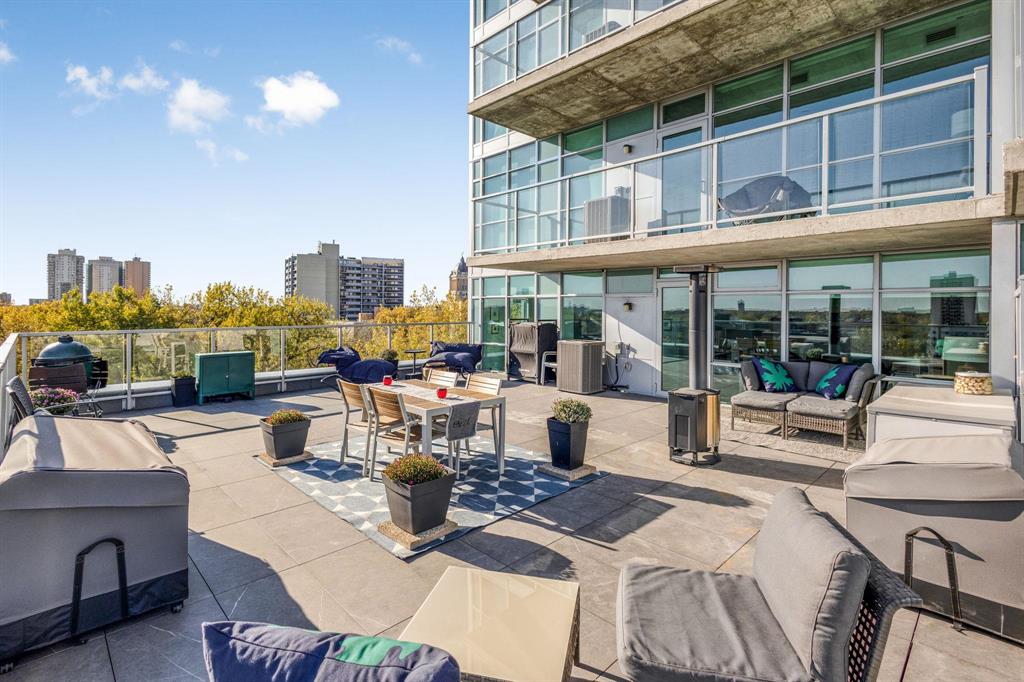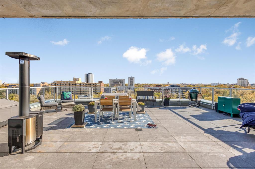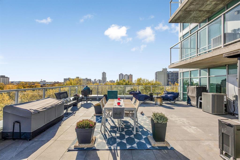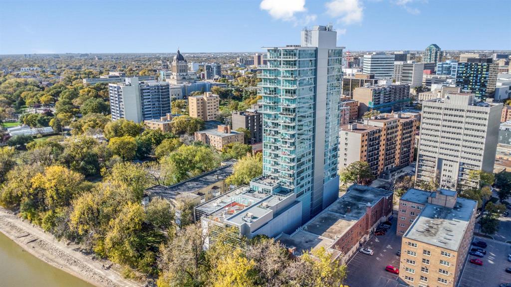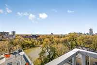 Step into luxury with this downtown Winnipeg condo, featuring a stunning 900-square-foot, south-facing balcony that offers panoramic river views—ideal for outdoor entertaining or enjoying your morning coffee. Inside, the beautifully designed space showcases high-end finishes, including quartz countertops, sleek modern cabinetry, under-mount sinks, and top-of-the-line Jenn-Air/Fisher Paykel appliances. The primary suite includes a walk-in closet with built-in organizers, and in-suite laundry adds everyday convenience. Enjoy exclusive amenities, including a landscaped terrace with breathtaking river views, a cozy lounge with a fireplace and pool table, and a fully equipped fitness studio. The building also boasts a stylish two-storey lobby, above-grade parking, a guest suite, EV charging stations, and a Bluebox parcel pick-up service. Plus, access to the Assiniboine River Walk makes this condo the perfect blend of comfort, luxury, and convenience. Pets are welcome! ALL MEASUREMENTS ARE +/-JOGS.