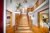 SS NOW | OFFERS ANYTIME AFTER OPEN HOUSE | OH APRIL 18&19 2-4 P.M.| Country living in the city! Nestled on approx. 3 acres, this impressive custom-built 2634SQFT home offers space, privacy & endless flexibility for your family. The main floor features a grand oak staircase, 2 living rooms, formal dining room with French doors, spacious island kitchen with granite counters, backsplash, under-mount sink, pantry, built-in appliances & breakfast nook, plus a stunning 4-season sunroom. The sunken living room and family room are anchored by a beautiful 2-sided fireplace, creating warm and inviting living spaces. Upstairs offers 4 spacious bedrooms, including a large primary retreat with WIC & ensuite with jetted tub & private rooftop deck. The fully finished basement includes a huge rec room, 2pc bath, rough-in plumbing for a future kitchen or suite & direct access to the triple attached garage. Upgrades include hardwood and tile flooring, paint, newer shingles, insulated garage doors, reverse osmosis system & security cameras. Outside, enjoy mature landscaping, circular driveway, rear deck/patio with sunset views, 24'x30' detached workshop. Minutes from schools, shopping & transit. Ask for list of updates.