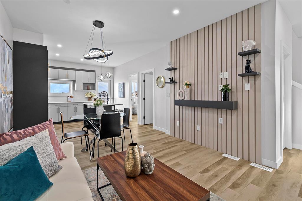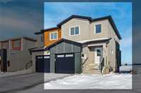 SS Now. Offers reviewed as received.Show Home,233 Numeracy Lane,Tue -friday (5 pm to 7pm)Sat–Sun, Feb 28 & March Ist, 2–5 PM .Welcome to this stunning lake-view two-storey home backing onto green space, offering quick possession and modern luxury throughout. This beautifully designed residence features 4 spacious bedrooms, 3 full bathrooms, a versatile loft, and a convenient side entrance. The bright open-concept layout offers soaring 9’ ceilings on the main floor and basement, laminate flooring on the main level, cozy carpet on the second floor, and a striking built-in entertainment wall in the living room.The chef-inspired kitchen impresses with soft-close glossy cabinetry, quartz countertops, a Island, and sleek black fixtures with designer lighting. All bathrooms showcase quartz banjo-style vanities with matching borders. The primary suite offers a walk-in closet with built-ins and a tiled ensuite with glass shower. Enjoy second-floor laundry, glass insert railings, an attached garage with 8’ door height, and an extended driveway. Close to schools, hospital, transit, Walmart McPhillips, parks, and more. Dimensions approximate. Other home options available.Dimensions are +/- Jogs .