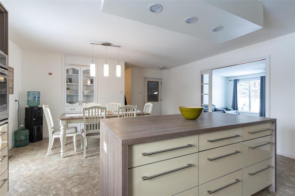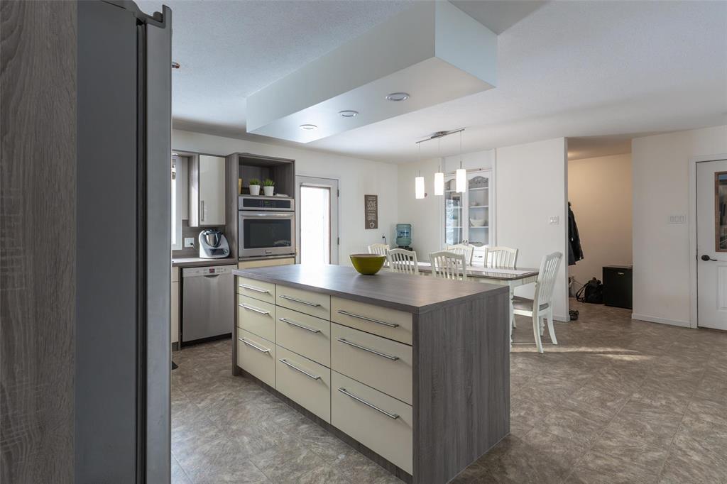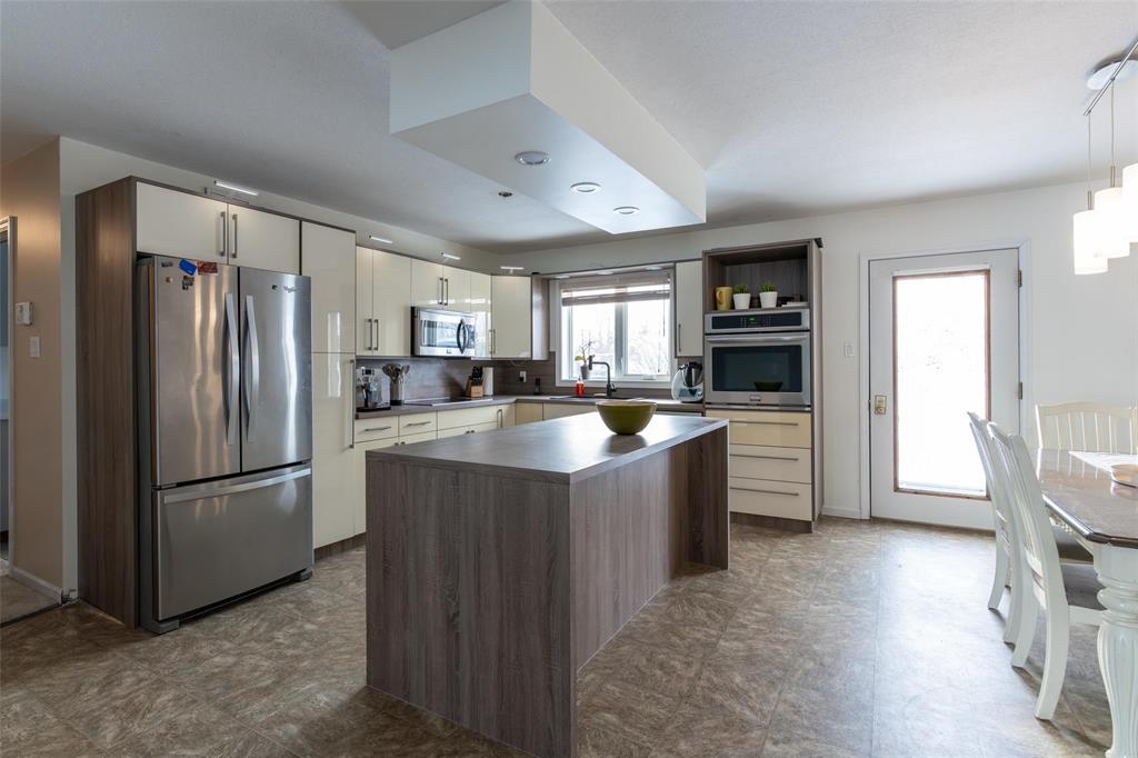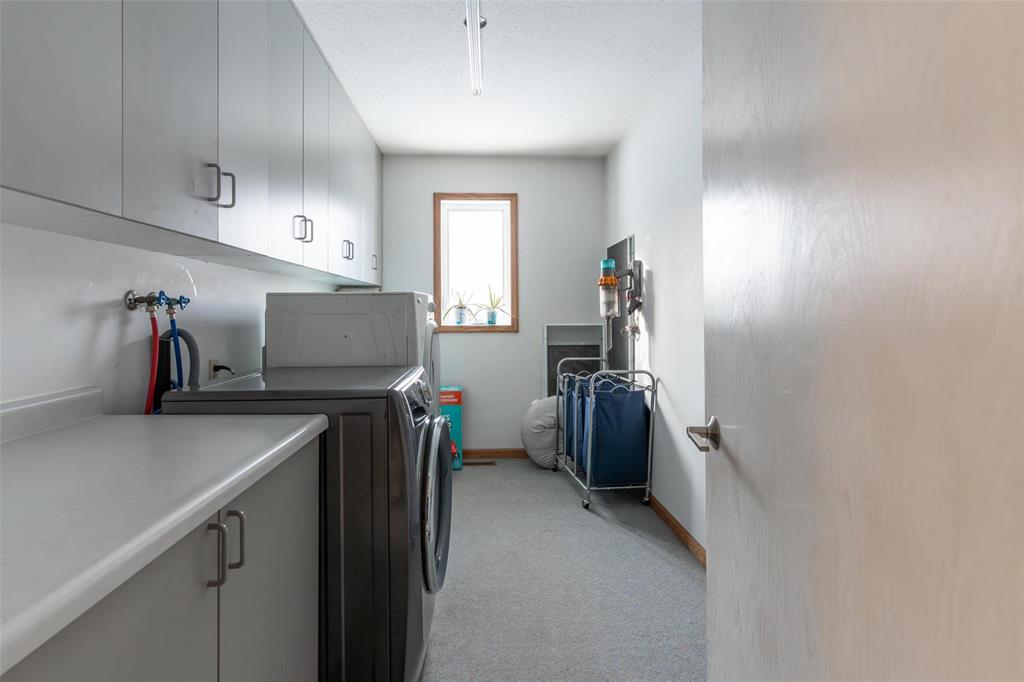 This property features a spacious 30’ x 35’ double garage complete with door openers, floor heating, and an air exchange system. Enjoy the convenience of a large U-shaped paved driveway, also connected to floor heat.