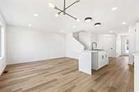 END UNIT 1210 sf townhouse with 2 levels plus a full unfinished basement! A total of 3 bedrooms, 2.5 bathrooms this home has it all! The primary bedroom is a showstopper- massive picture window, ceilings that vault approx 11' height. Walk-in closet with added window for tons of natural light and your own 3pc ensuite! Thoughtful layout throughout with professionally chosen finishes. Oxford white kitchen cabinetry & vanities with modern black hardware. QUARTZ COUNTERTOPS! Large eat-up island and bonus pantry for added storage. Contemporary light fixtures giving this home a sophisticated and modern feel throughout. Luxury vinyl plank flooring on the main level, LVT in the upstairs bathrooms and laundry closet. Stackable laundry located on second level close to bedrooms to save those trips to the basement! Carpet up the stiars and into all the bedrooms on the second floor. Att single garage central a/c, hi-efficient furnace and concrete drive plus NEW HOME WARRANTY are all included! Photos are of previous similar build- some lighting/finishes (exterior color) may vary.