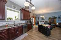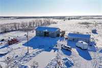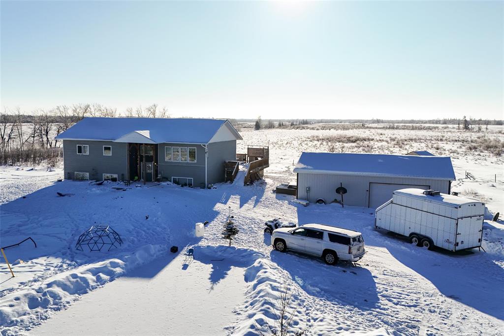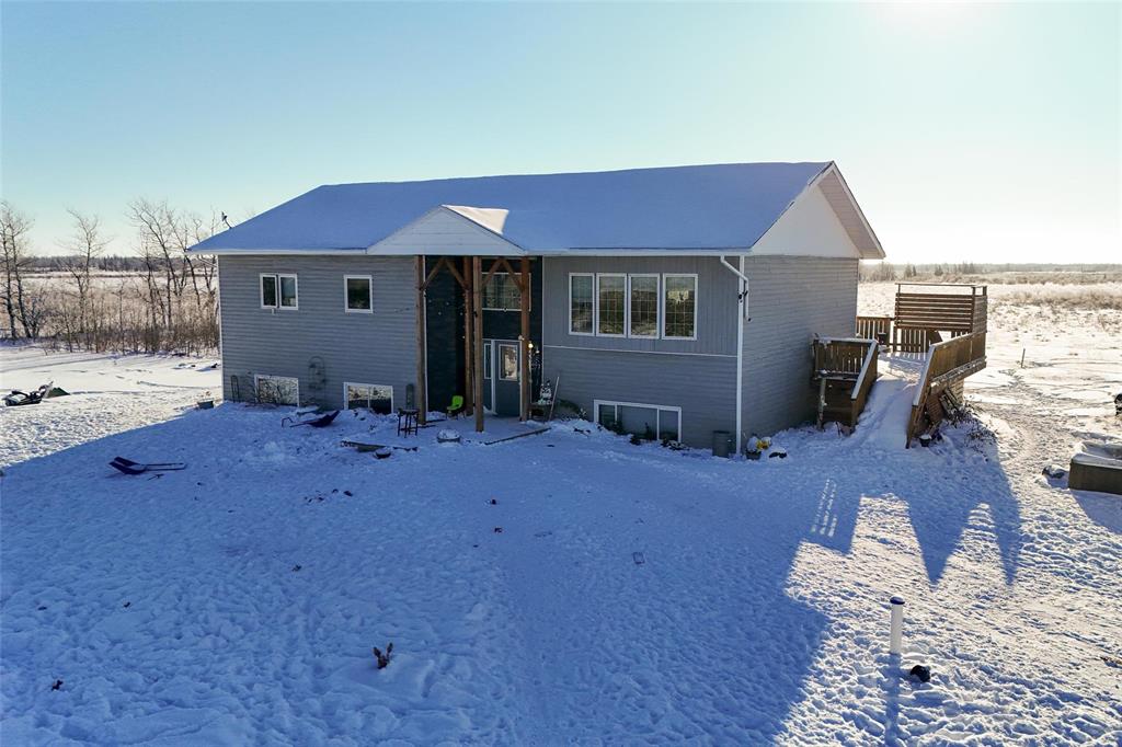 Original owners selling custom built 1740 sq. ft. bi-level on 80 acres. The property offers a front drive, PVC windows, ICF construction, 42 x 26 insulated workshop/garage and maintenance free exterior. The home has 200 AMP service, central air, open concept design, two fully finished levels of living space, 4 bedrooms, two baths, rec room, and vinyl plank flooring throughout the upper level. The primary bedroom features a walk in closet and en suite bath. There are garden doors leading from the dining area to a south facing deck. This great family home is minutes from Lake Winnipeg and the town of Gimli.