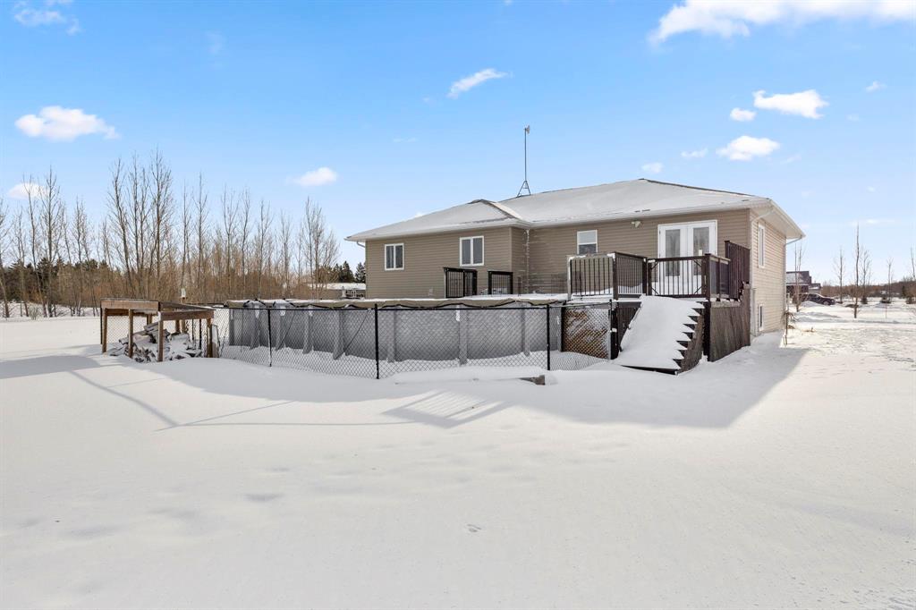 Open house Sunday January 25th 1:00–3:00pm. Welcome to your forever home - a custom built 1808 sq ft raised bungalow situated on a 2 acre lot in a family friendly neighbourhood where kids play outside and neighbours quickly become friends. Step inside to a massive foyer and vaulted ceilings that create a bright, open feel. The open concept main floor is perfect for everyday living and entertaining, featuring fresh paint and a modern kitchen with high-end ss appliances and quality finishes. Main level living includes laundry room, 3 bedrooms and a 4-piece renovated bath (2025), including the massive primary with a 4-piece ensuite. The lower level impresses with 9 1/2 ft ceilings and oversized windows, offering a space that feels nothing like a basement (2020) - complete with a rec room, workout area, 2 additional bedrooms, and full bath. Outside, enjoy your above-ground salt water pool with new heater (2025), mature treed yard, and endless space to play. Additional features include water filtration system (2019), fiber internet, oversized 32' x 26' attached garage and so much more. A perfect blend of space, upgrades, privacy, and community - welcome home!