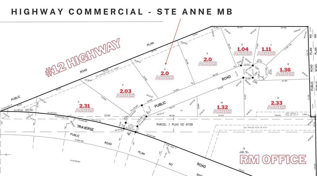 Highway Frontage Commercial 2.0 Acre Lot in Ste Anne - Get your business notice with this new Subdivision with 324' of frontage on highway #12. Excellent visibility and easy access. Lots are serviced with Gas and Hydro and are currently in the subdivision process. Titles and road expected summer of 2026. Rare opportunity - call today for more details.
