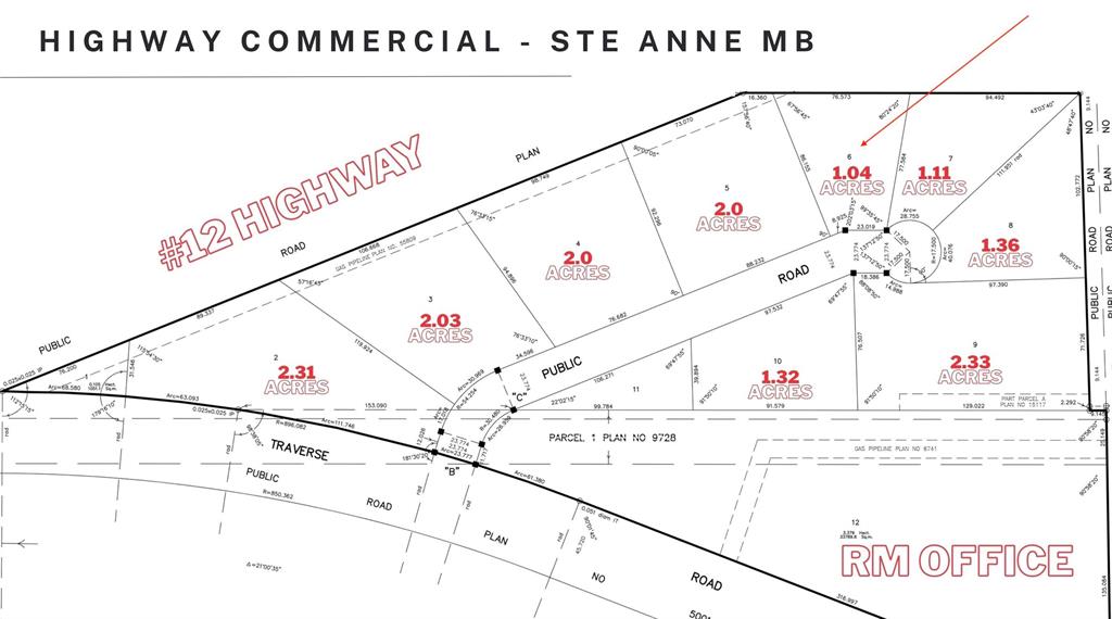 Commercial 1.04 Acre Lot with #12 Highway visibility in Ste Anne - Get your business notice with this new Subdivision with excellent visibility and easy access. Lots are serviced with Gas and Hydro and are currently in the subdivision process. Titles and road expected summer of 2026. Rare opportunity, call today for more details.
