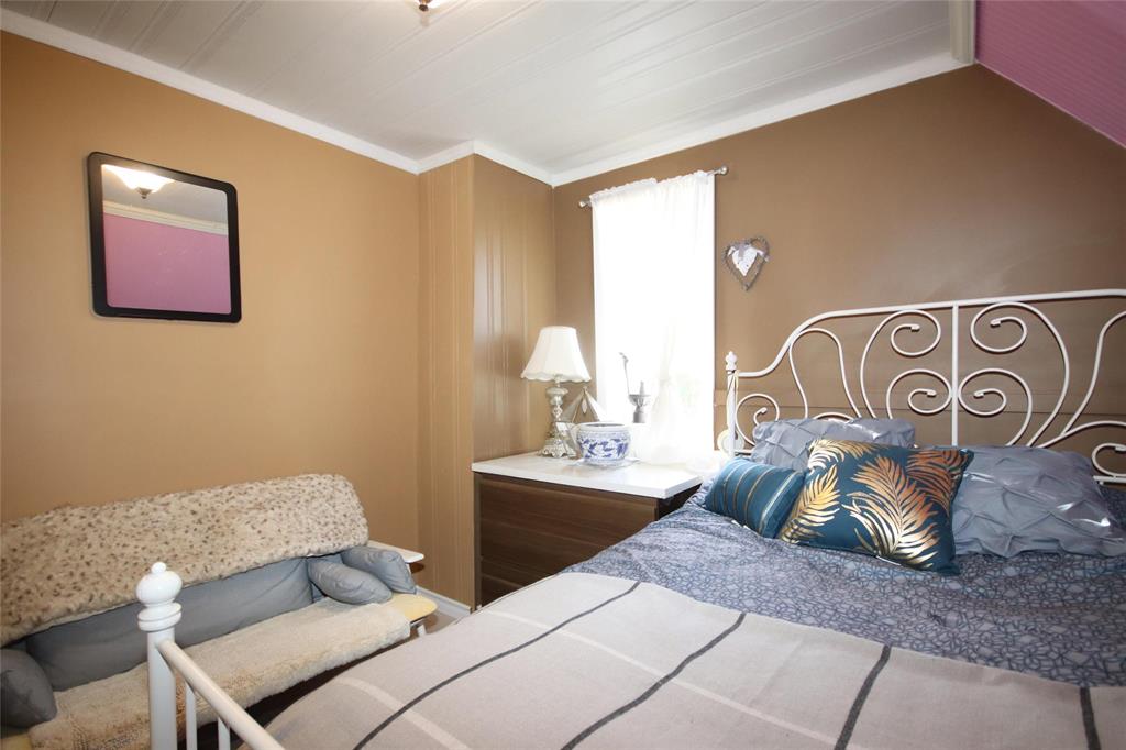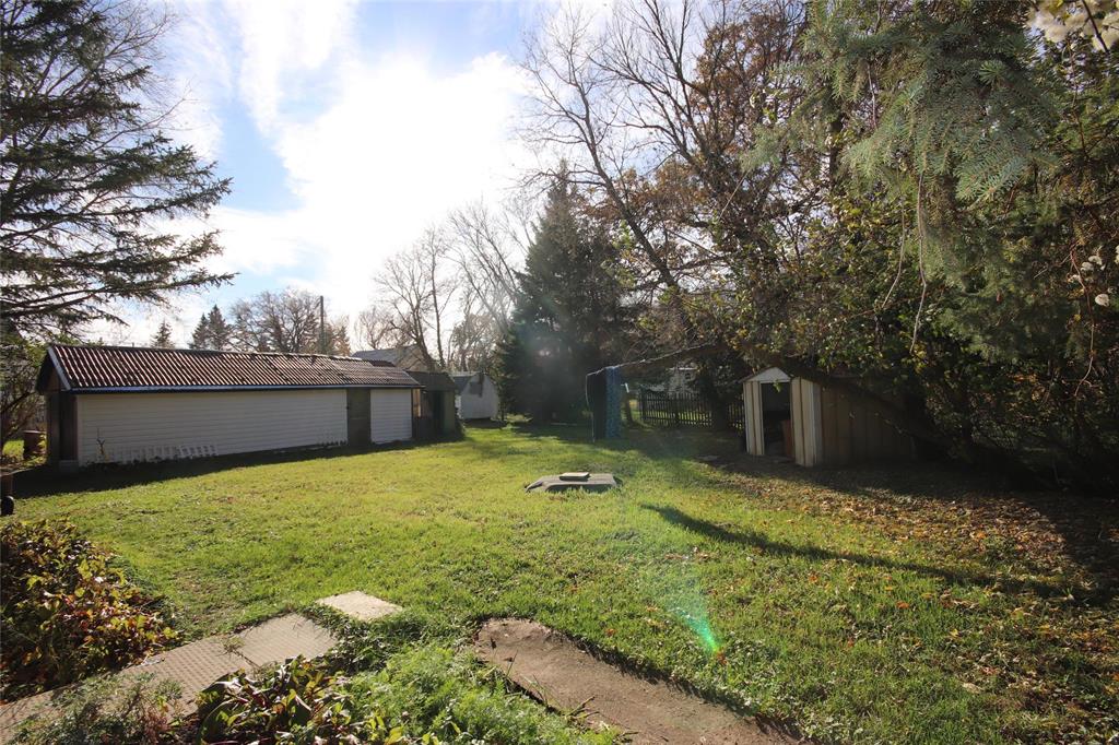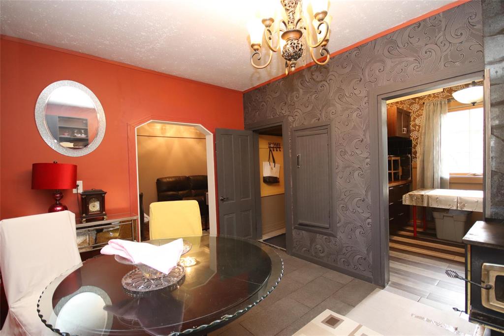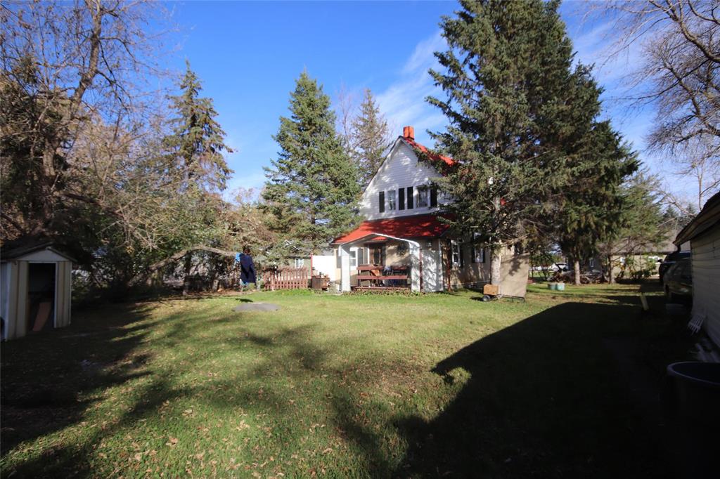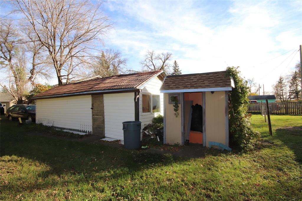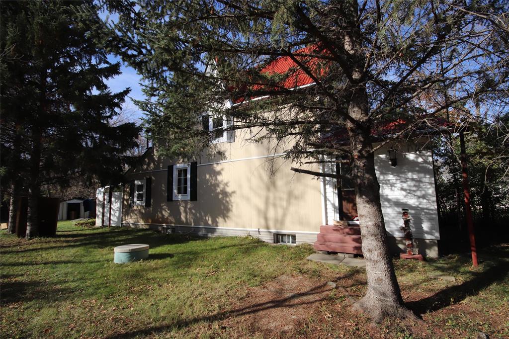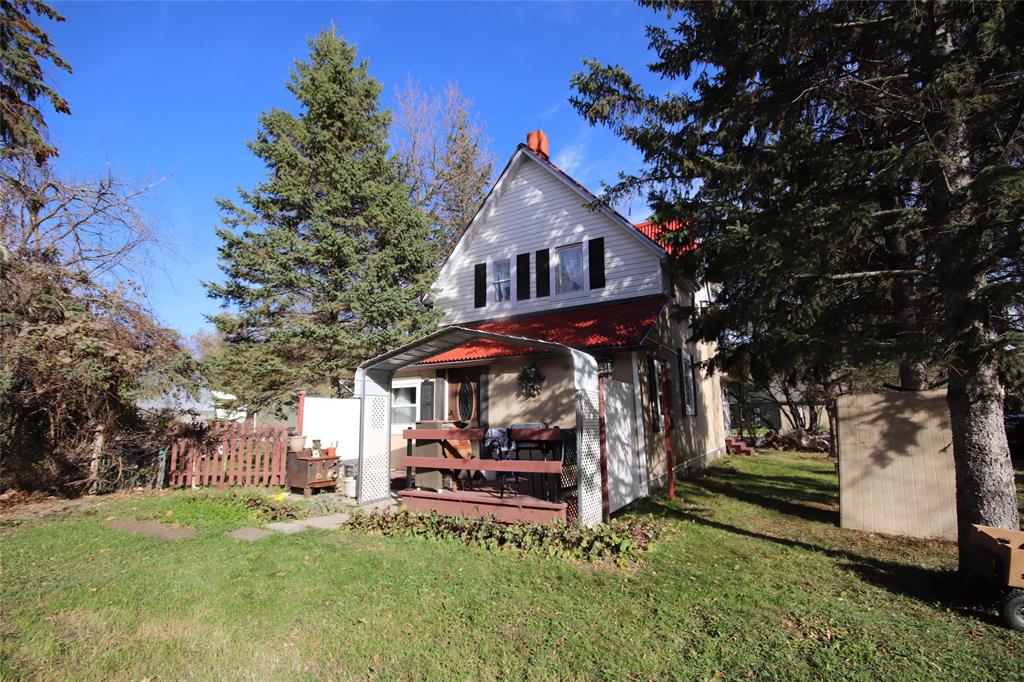 Numerous Updates to this Charming 1 1/2 Storey with a European Flare! Attractive Wall Treatments complement the Flooring & Fixtures! High Ceilings throughout makes these Spaces airy! Formal Dining Room with Custom Wall Paper from Europe is Stunning! Ample room here for a Large Table & Sideboard! Leading right into the Kitchen boasting New Cabinets & Great South Facing Window! New Blt. In Dishwasher to be installed in 2026! A Spacious Living Rm complete with Upgraded Tile Flooring! A Sunroom can be Enjoyed for an additional Entertaining Space! All three Bedrooms are a Great Size & steps away from the Huge 4-pce Bathroom featuring a deep soaker tub! New 2-pce Bathroom on main floor 2026 in progress! Pride of Ownership in the Basement is evident-Nice,Tidy and Ready for Storage! Main Floor Laundry is so Convenient! Updates to Windows,Vinyl Siding,Doors… This Private Yard has mature trees,lawn area,2 Sheds & a Det. Garage! Walking Distance to the Park,Outdoor Skating Rink,Store,Post Office & Ball Diamond. Bus pick-up right in Town for School! Don’t Miss out on this Affordable Property! Great Rental Property As Well!!!