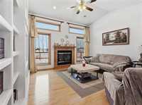 Inside, enjoy rich oak hardwood floors, brand new granite countertops, soaring 10-ft ceilings, and a cozy gas fireplace. The primary suite features a walk-in closet and a private ensuite complete with a jetted tub. With four bedrooms in total, the fully finished lower level offers a spacious family room, gym area, additional bedroom, and full bathroom—perfect for family living or entertaining.