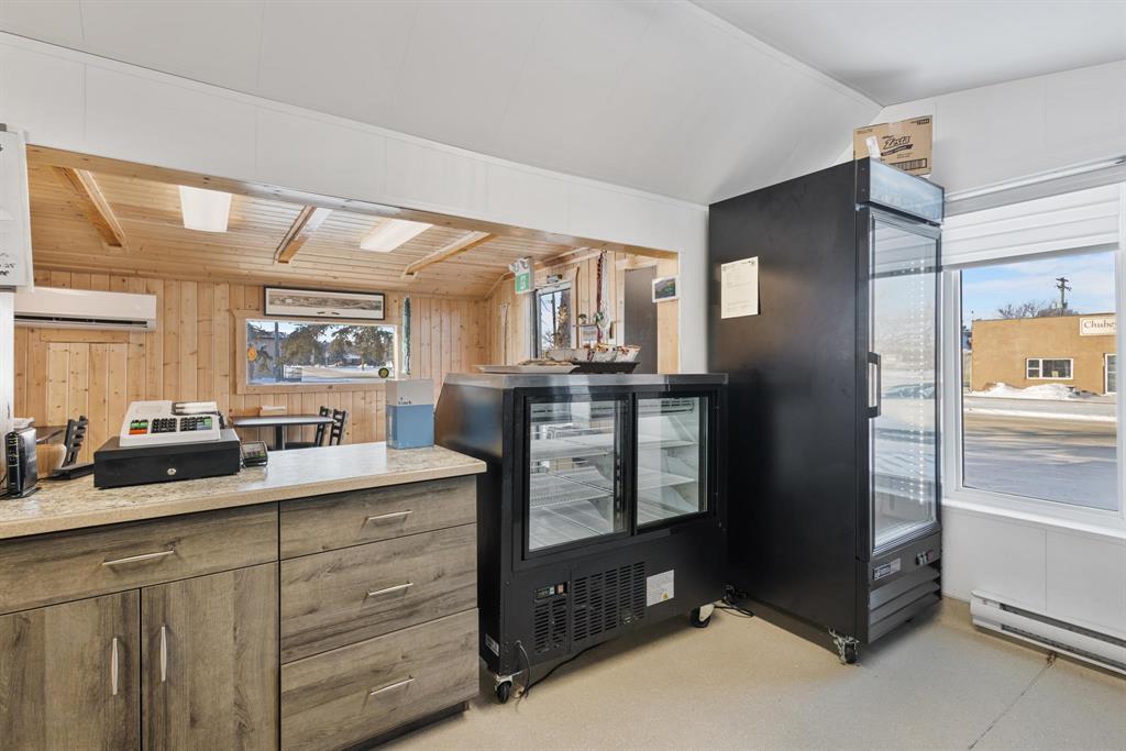 Uptown Café & Bakery presents a fantastic opportunity to own a well-established food business in the heart of Dominion City. Ideally located on the town’s main road and just steps from schools, recreation, and other town services, this spot benefits from strong local visibility and steady foot traffic. Currently operating as a lunch café with both dine-in and take-out options and some catering, the business is well suited for an owner-operator or entrepreneur looking to expand hours or offerings. The 600 sq. ft. building is efficiently laid out and comes fully equipped, including refrigerators, freezers, display cooler, stove, oven, and more—allowing for a smooth transition and immediate operation. The space is serviced by baseboard electric heat and a ductless A/C split unit for year-round comfort. Lots and Lots of growth potential including catering, extended service hours, seasonal patio seating and more! Is this the year you start an exciting self employed business operating opportunity affordably?