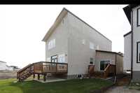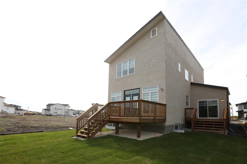 SS now. offers as received. Discover this impressive 1,926 sq ft home backing onto a peaceful park in a desirable neighbourhood. This energy-efficient new build features 4 bedrooms and 3 bathrooms, including a convenient main floor bedroom with a full bathroom. The open-concept layout showcases a stunning kitchen with a 10-foot island and premium Laminam porcelain countertops, complemented by stainless steel appliances. Large windows throughout flood the space with natural light, while a cozy fireplace adds warmth and ambiance. The ensuite boasts a luxurious walk-in shower. Outdoor living is enhanced with two spacious decks overlooking the fully landscaped yard, perfect for entertaining or relaxing. The adjacent park includes a playground, ideal for families. Additional features include central air conditioning, quality window coverings and blinds throughout. This Efficiency MB Certified home combines modern comfort with energy-saving features, offering both style and sustainability in a prime location. PRICE INCLUDES GST - ASK YOUR REALTOR ABOUT GST REBATE IF YOU'RE A FIRST TIME HOME BUYER.
