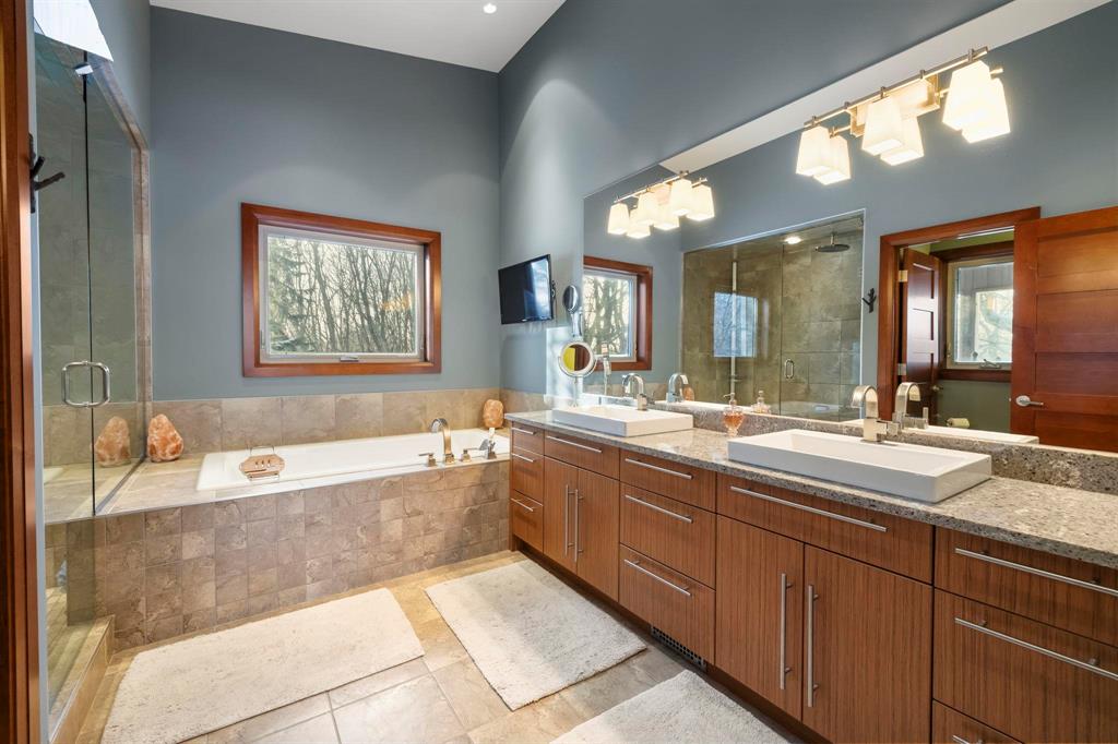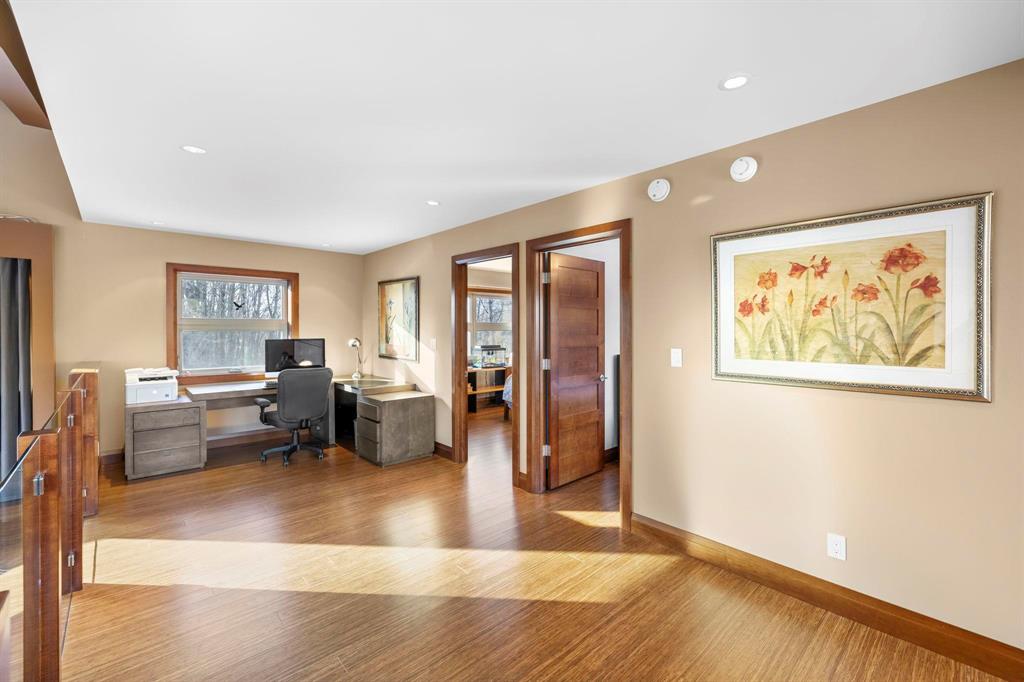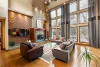 Absolutely stunning custom-built home offering over 5,000sf of beautifully designed living space,showcasing impeccable quality& thoughtful details throughout.From the moment you step inside,you’ll fall in love with the soaring 23’ ceilings & sun-filled great rm w/ south exposure and a cozy EEF wood-burning fireplace accented by copper,slate,stone & wood.The chef’s kitchen is a showstopper w/oversized island,quartz countertops,custom soft-close cabinetry,abundant pot drawers,and top-of-the-line appl.The Eat in kit flows into a 4 season sunrm surrounded by windows and featuring a hot tub—perfect for year-round relaxation.The primary suite is a true private retreat w/screened porch,spa-inspired ensuite w/tiled steam shower & cast-iron soaker tub,plus a lrg walk-in closet w/custom built-ins. Upstairs,the open loft with glass railing overlooks the main living space & makes an ideal office,along with 2 generous bedrms connected by a Jack & Jill bath.The fully finished lwr lvl is made for entertaining,offering a massive rec room,specialty bar,media room,gym,hobby room,2 additional bedrms,and ample warm and cold storage.Nestled on 1.5 acres of peaceful serenity,this extraordinary property is truly a must-see.