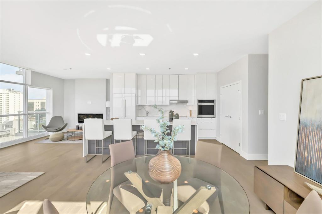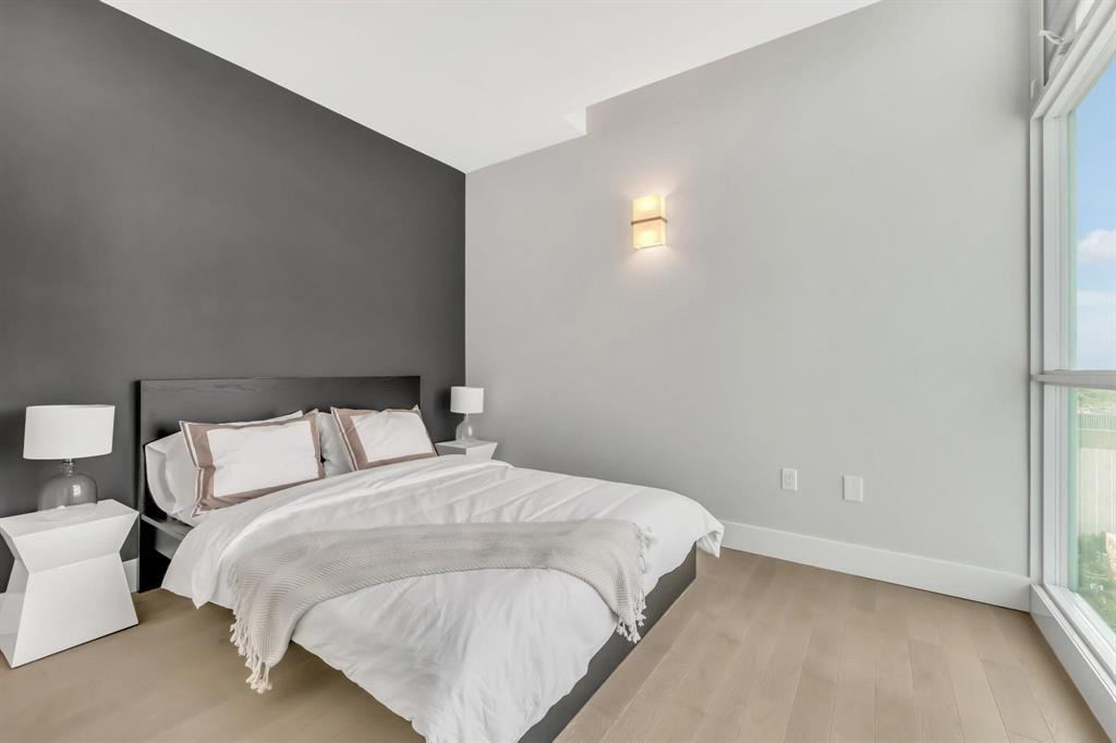 Host in the party room with a 2,364 sq ft terrace, unwind in the lounge with fireplace and pool table, or stay active in the fitness studio. The building also offers a 2-storey lobby, above-grade parkade, car wash, guest suite, and a private lighted path connecting you to the river walk. MEASUREMENTS ARE +/- JOGS.