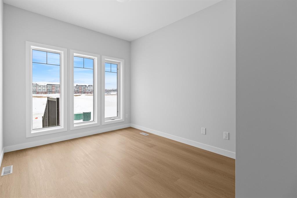 This 3-bedroom, 1,446 sq ft corner unit is now under construction with summer 2026 possession! This is the only 3-bedroom unit available with 2026 possession, so don't hesitate, act now to secure this unit. We can show you a finished unit with some notice, so call to book it now. Enjoy the convenience of condo living with low condo fees of only $155/month, while still enjoying living in your own home. The main floor features 9 foot ceilings throughout with LVP flooring in the main living areas and carpeting in the 3 bedrooms. The kitchen features a large island with a breakfast bar & corner pantry. The great room features pot lights, a large picture window and a garden door to your included deck. The master bedroom features a huge walk-in closet and 3pce ensuite. Both secondary bedrooms are a great size with double closets. Main floor laundry with linen closet, plus a huge entryway with 2 closets. And yes, we can have the basement finished for you which would almost double your square footage with a plan for a 4th BR, 3rd bath, large storage room & spacious rec room. AT/2 with concrete drive & opener & cn/air included! Pics are of an upgraded unit.
