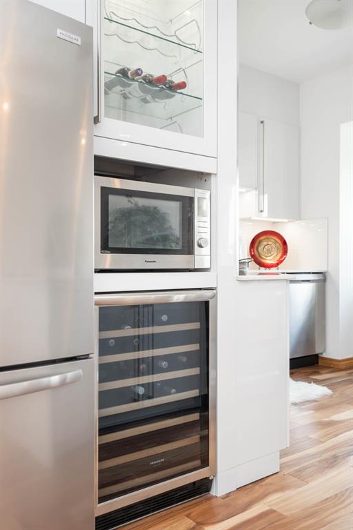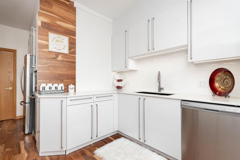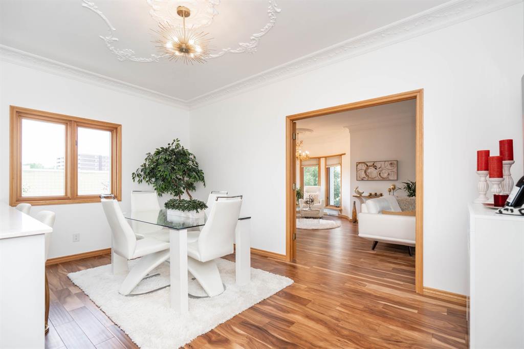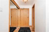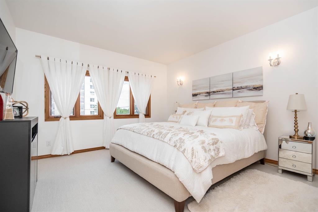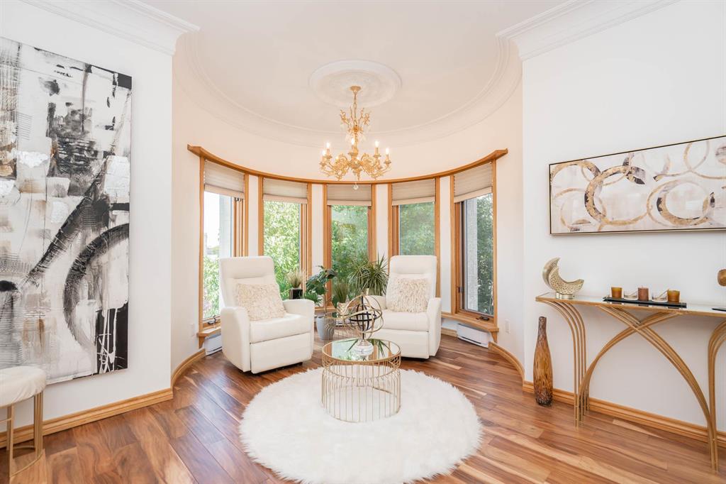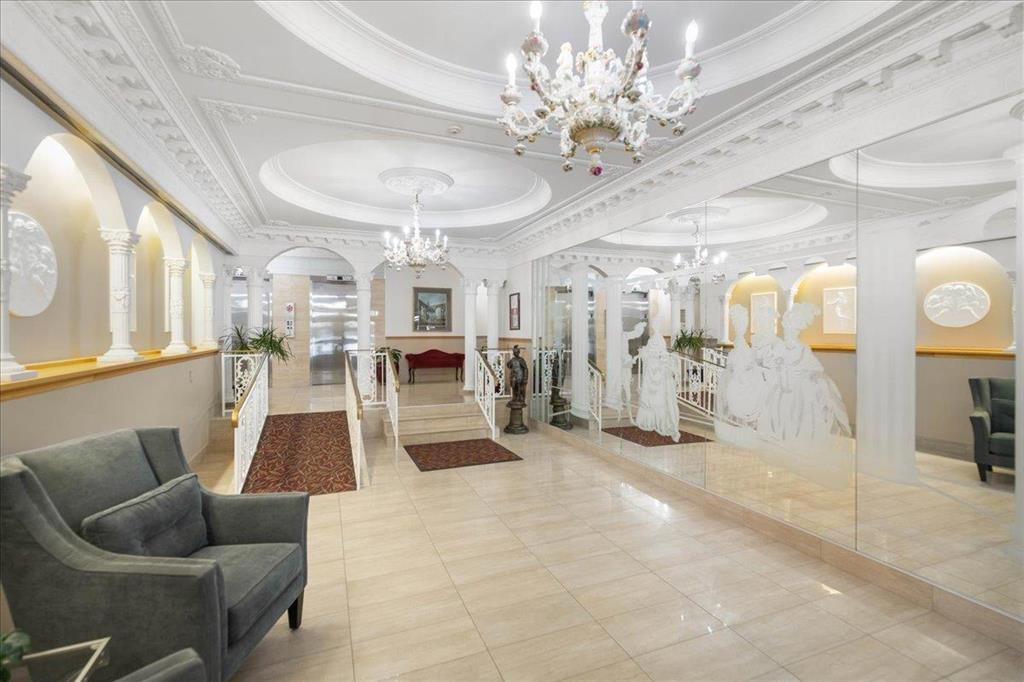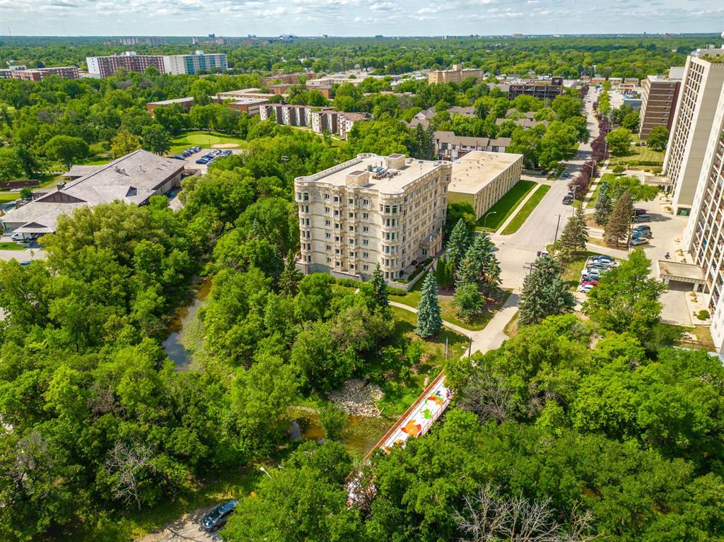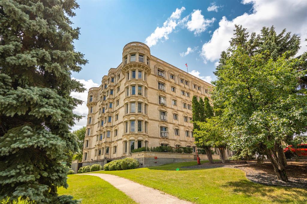 STUNNING LUXURY EXECUTIVE CONDO...Approx $125K recently invested in total renovation. Here is your chance to own one of the rarely available units in the Castle on the Seine! This sought after bldg boasts an architectural masterpiece that captivates you with its grand entrance into an elegant European Castle style lobby. Spacious 1700sf two bedroom, two bath unit flooded with natural light, intricately designed crown moldings & high ceilings. Luxury quartz kitchen w/large island, white cabinets (soft-close doors, under cabinet lighting as well as some interior cabinet lighting), built-in wine fridge and quality S/S appliances. Formal DR, LR features turret, porcelain entertainment wall w/linear electric fireplace & 65" Samsung Frame TV included. Patio door opens onto Juliette balcony. Large master bedroom with two full closets (including a walk-in), huge 3-pce. ensuite w/jacuzzi tub. In-suite laundry/office. Neutral decor and engineered hwd flrs. Newer Energy Efficient furnace '24 and Hot Water Tank '25. Concrete bldg, underground prkg, and roof top patio. Neighboring on the Niakwa Golf Course and just steps away from walking paths along the Seine. Fantastic location close to everything!