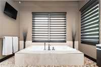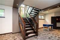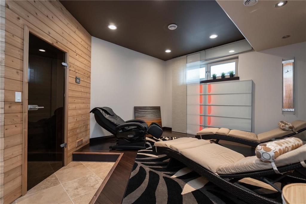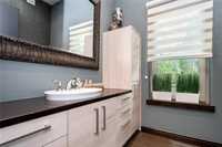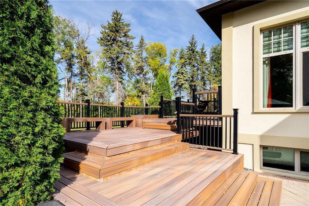 Historic River Road A rare opportunity to own a European-inspired custom bungalow on 1.81 acres of picturesque property, offering over 6,350 sq. ft. of refined living space in a peaceful, tree-lined setting. Grand living & dining areas showcase rich stone accents, custom millwork, soaring 10–12’ ceilings, a cozy gas fireplace—ideal for elegant entertaining. The gourmet kitchen is a showpiece with dual quartz islands, premium Miele appliances, and a sun-filled 4 season sunroom that opens to a tiered deck complete with hot tub and gazebo. The luxurious primary suite is a private retreat featuring a spa-inspired 6-piece ensuite and an impressive walk-in closet. The fully finished lower level offers exceptional versatility with a state-of-the-art home theatre, sleek bar and recreation area, office, 2 spacious bedrooms with walk-in closets, a designer bath, plus a full spa area with steam shower and sauna. Built to the highest standards with ICF construction from basement to trusses and geothermal heating for superior comfort and efficiency. Beautifully landscaped grounds, a triple attached garage, quiet cul-de-sac location just minutes to city amenities. Truly a one-of-a-kind residence.