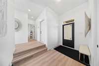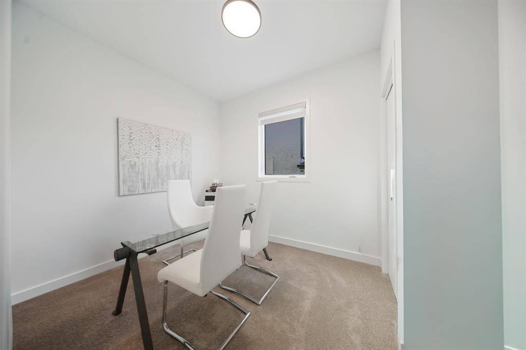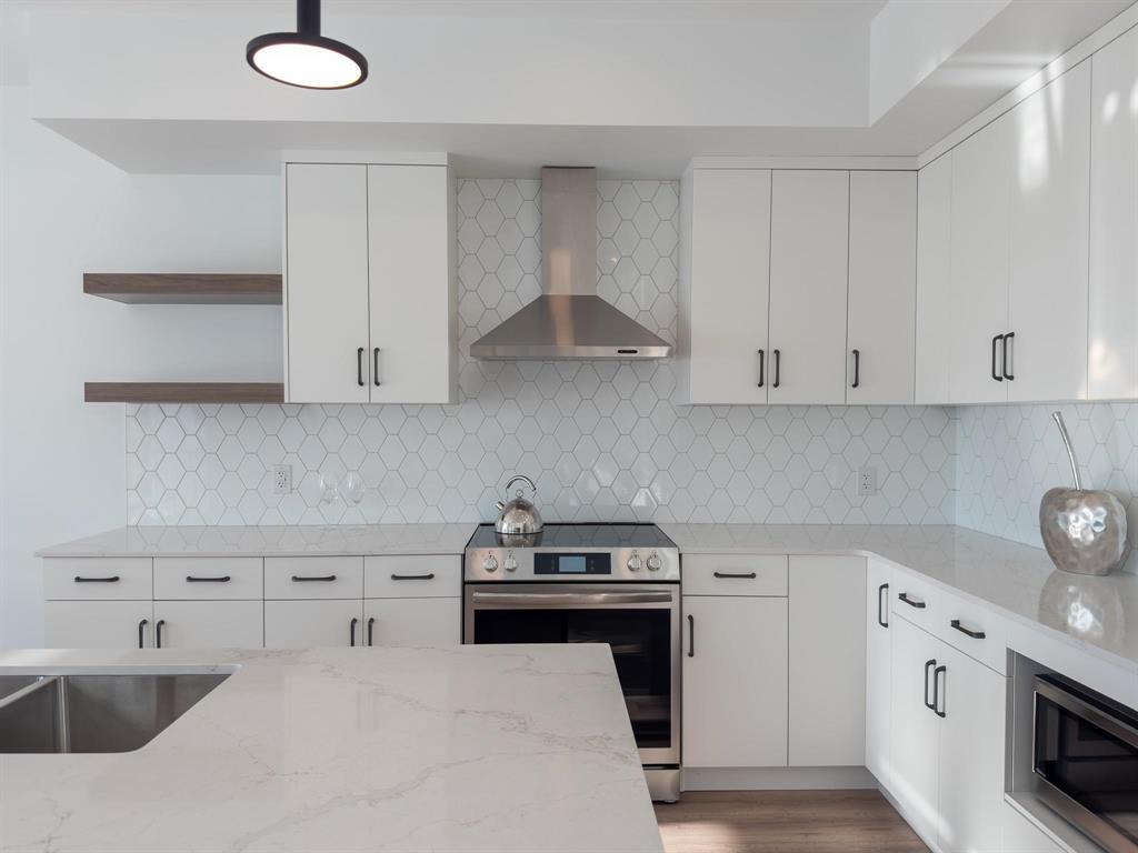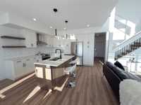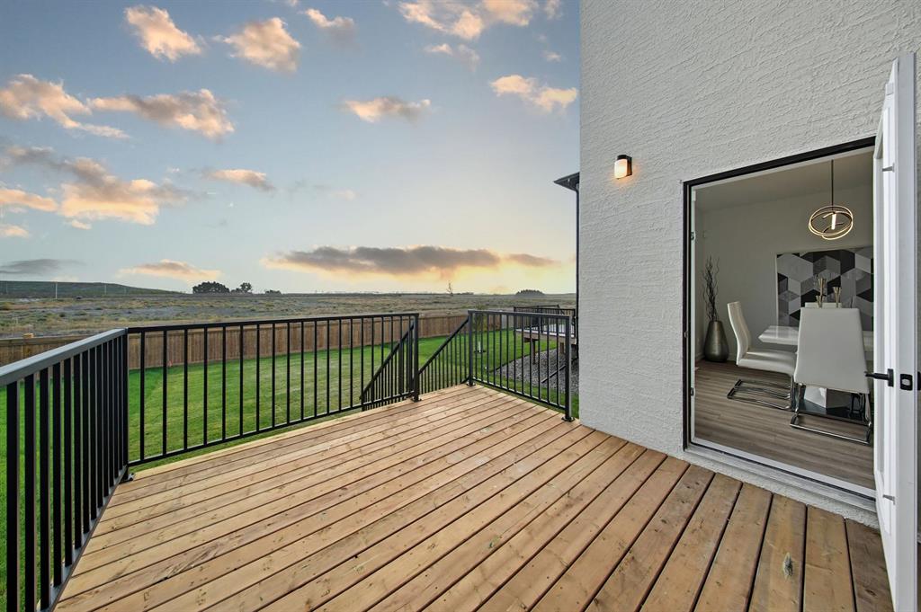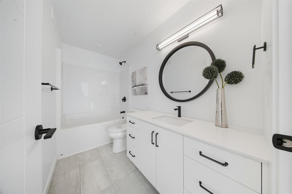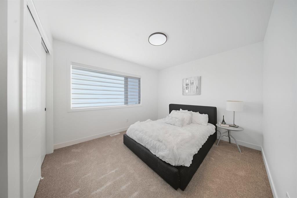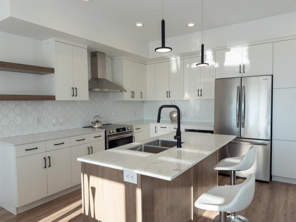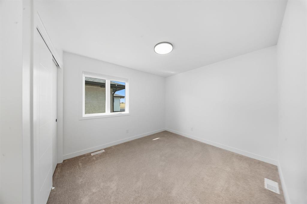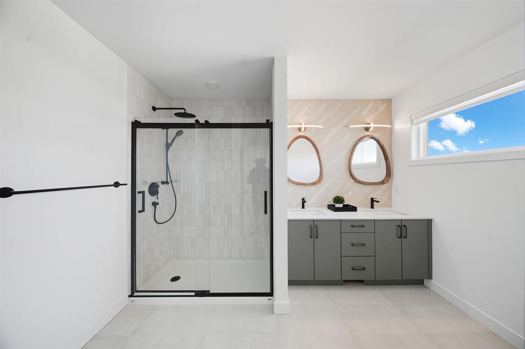 Welcome to Casa Moderna II from KDR Homes’ Casa Bella Collection. A two-storey home with open-to-below great room and modern functionality. This 1,684 sq. ft. home offers 4 bedrooms and 3 full bathrooms, including a main-floor bedroom with a full bath, ideal for guests or multigenerational living. Step into a spacious foyer that leads to an airy great room featuring soaring 18’ open-to-below ceilings, creating a bright, grand atmosphere filled with natural light from large windows throughout. The main level showcases a contemporary kitchen with thermo-foil cabinetry, an oak island, quartz countertops, and a tiled backsplash, complemented by an entertainment unit with electric fireplace and stylish designer lighting. Upstairs, the primary suite features a well-appointed ensuite with a tiled glass shower and double-sink vanity, while two additional bedrooms, a 4-piece bathroom, and a spacious laundry room complete the level. Additional highlights include a side entrance, 9’ basement ceiling height, a double attached garage, and a complementary deck with the basement ready for future development.