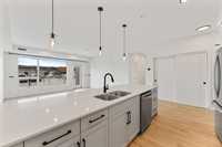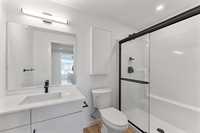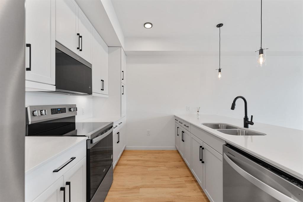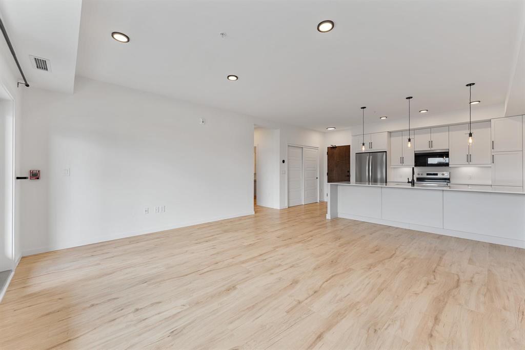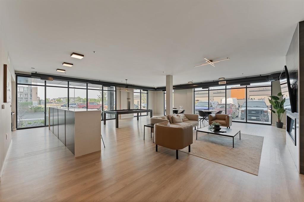 Like-new and move-in ready, this newer main-floor condo offers the perfect blend of modern style, comfort, and convenience. Thoughtfully designed for easy living, it features 2 spacious bedrooms and 2 full bathrooms within a bright, open-concept layout. Durable laminate plank flooring, sleek quartz countertops, and a full appliance package create a clean, contemporary feel throughout. The beautifully designed kitchen flows seamlessly into the living area and opens onto your own private patio—ideal for morning coffee, evening unwinding, or entertaining guests. A rare and valuable perk, this unit includes two parking stalls, one heated indoor stall plus an additional outdoor space. Residents enjoy excellent building amenities, including a stylish common lounge with pool table and kitchen area, as well as a fully equipped fitness room. Pet-friendly and conveniently located near shopping, restaurants, transit, and parks, this condo is perfectly suited for first-time buyers, downsizers, or investors.