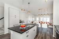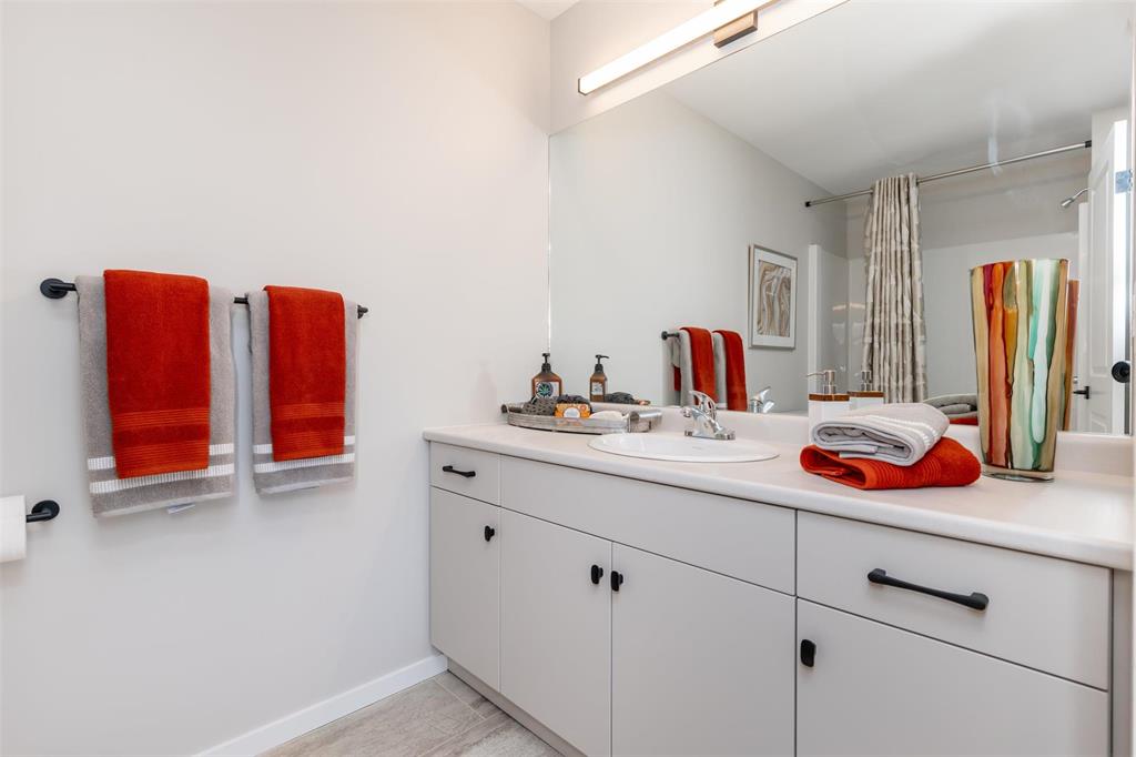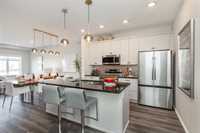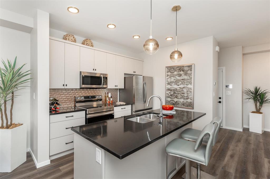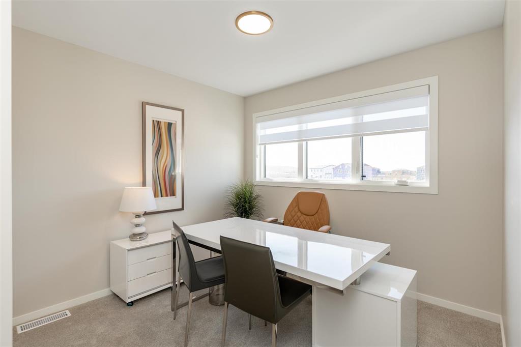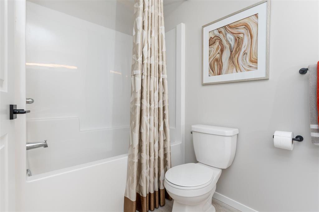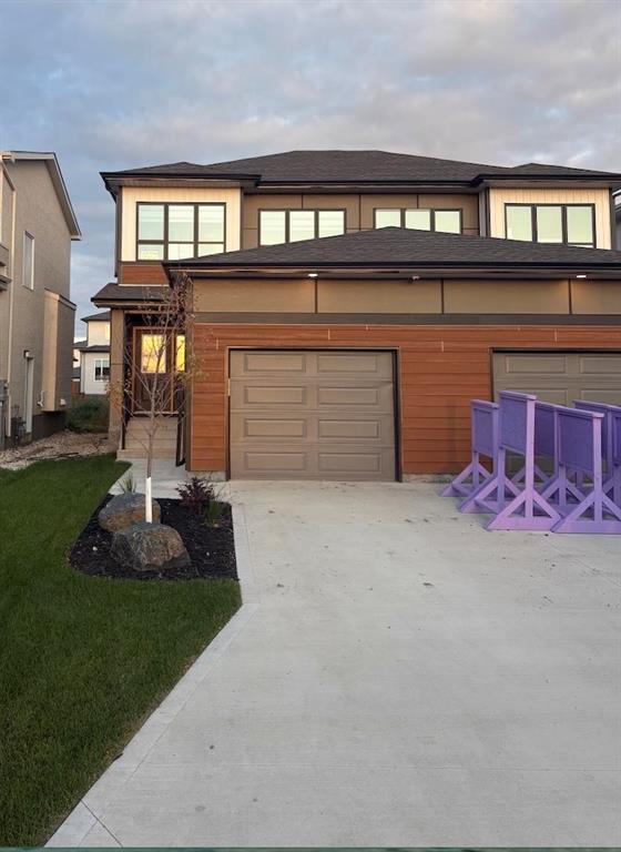 1400 Sq ft side by side showhome in Prairie Point with front drive to single attached garage and separate entry door to basement. Features plenty of upgrades and built to Efficiency Manitoba Specifications. This 3 bedroom home, has oversized windows, 9' main floor ceiling, a spacious kitchen with black quartz counters and double wall pantry with coffee bar! The Primary bedroom has a walk-in closet plus an ensuite bath with large vanity. The laundry is conveniently located on the second floor. Price includes central air conditioning, window coverings, kitchen appliances, main floor vinyl plank, alarm system, garage door opener, front yard landscaping and upgraded front exterior elevation.