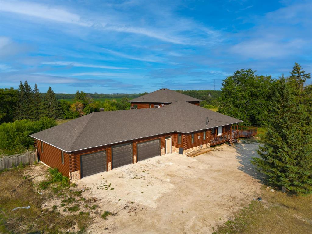 S/S now offers presented as received. This 3917 sq ft custom built country estate has everything 6 bedrooms and 3 washrooms . It has vaulted ceilings, lots of natural light. The kitchen has built in stainless steel appliances granite countertops and a large peninsula to sit around and seamlessly flowing to very large living areas one of which has a gas fireplace to cosy up to. The master bedroom on the second flor has a very large walk in cupboard and 6 pc ensuite also with a soaker tub. The master opens onto the two storey deck with great views of the property. An office area on the second floor can alternatively also be used as a nursery. Hardwood flooring throughout the living areas and stone tiles in the kitchens, washrooms and office. Two bedrooms with access to the basement rec room and their own kitchen and washroom can be used as an in-law suit. Attached 8 car fully insulated (1800 sq ft) garage has its own electric panel giving endless possibilities big enough for a couple of pickleball courts . A log siding exterior gives the exterior a well made country home aesthetic. With all this just 18 minutes from Mcphillips and the perimeter, this could be your retreat so close to the city.