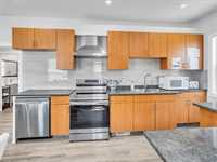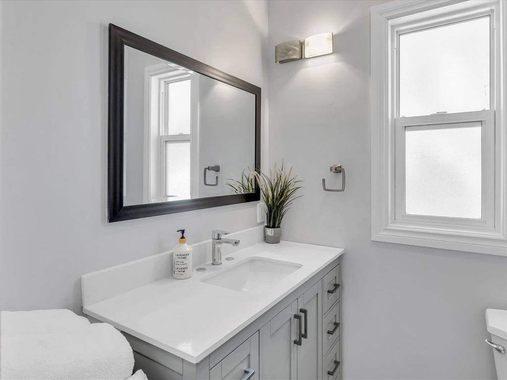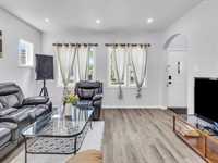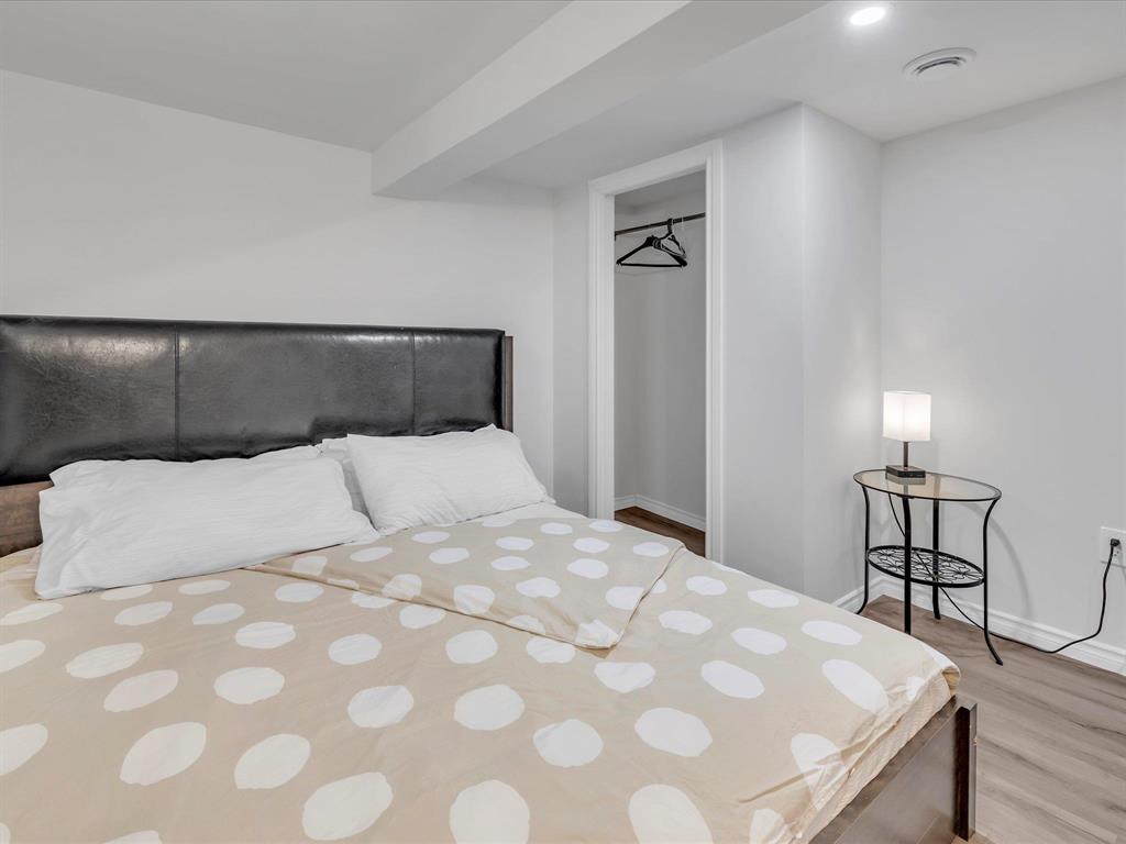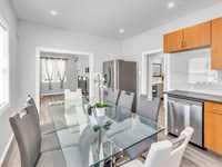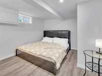 Welcome to this beautifully renovated 876 sq. ft. bungalow, perfect for short-term rental or Airbnb use! This modern home features two spacious bedrooms, a stylish 4-piece bathroom, a bright and inviting living area, and a sleek kitchen with quartz countertops, stainless steel appliances, and a dining space. Large new PVC windows flood the main floor with natural light. A convenient side entrance leads to the fully finished basement, offering an additional good-sized bedroom, a second 4-piece bathroom, a generous rec room, a storage room, and laundry. Enjoy the beautifully landscaped backyard and the convenience of three parking spaces in the rear parking area. A turnkey opportunity you don’t want to miss! Close to all amenties. Upgrades: Appliances 2023, Floor, Baseboards and doors 2023, Paint 2023, Washrooms 2023, HWT 2019.