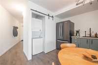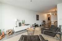 631 sq. ft. of contemporary living space. This unit features floor-to-ceiling windows, allowing for an abundance of natural light and great views. The unique architectural design sets this condo apart. The recently updated kitchen boasts modern appliances, and stylish finishes, ideal for both cooking and entertaining. Convenience with in suite laundry. Includes one parking spot .This condo presents a fantastic investment opportunity or a perfect entry into the real estate market with a modern, move-in-ready space. 2 pets allowed, not to exceed 35lbs Call today to book your viewing.