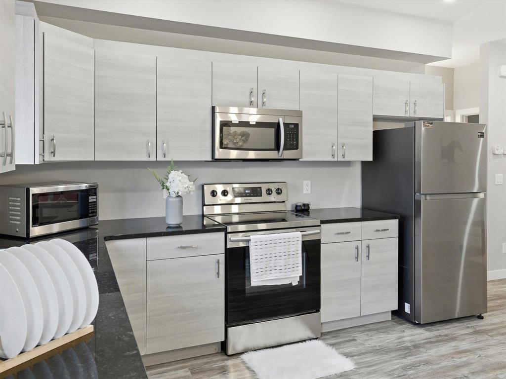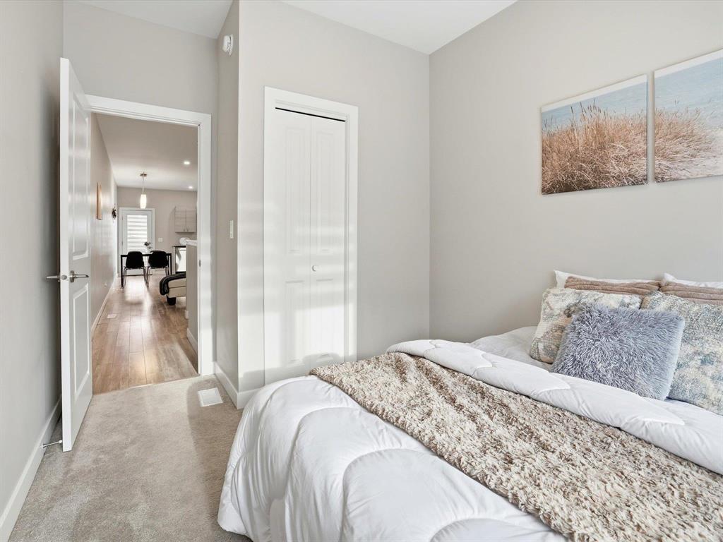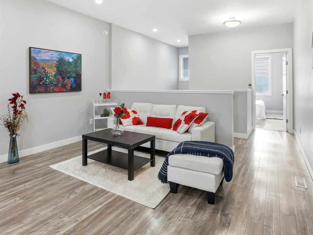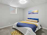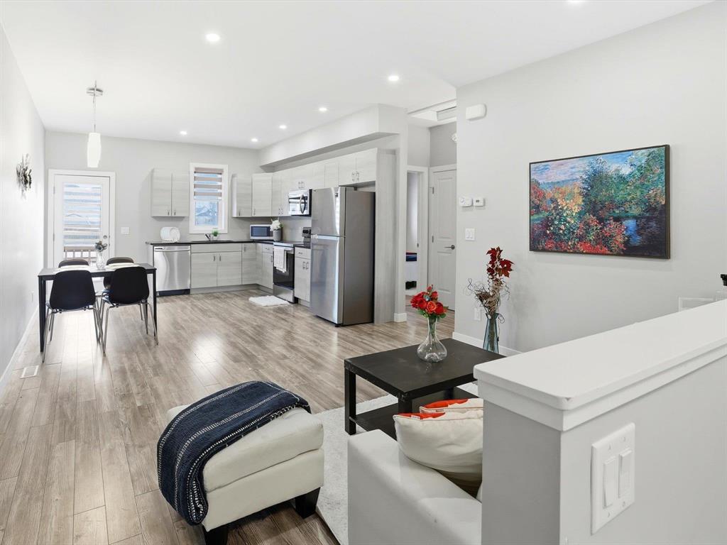 Experience refined living in this upscale bi-level townhouse in desirable South Pointe. Offering 5 bedrooms and an office, along with 2 full bathrooms, this home features a thoughtfully designed layout. The main level includes two bedrooms, an office, a full bathroom, and a spacious living area with 9-foot ceilings and triple-pane windows. The eat-in kitchen is finished with quartz countertops, laminate flooring, stainless steel appliances, and upgraded lighting. The fully finished basement boasts 9-foot ceilings, a large recreation room, three additional bedrooms, and a 4-piece bathroom. Additional highlights include LOW CONDO FEES, a front-attached single garage and a convenient location close to the University of Manitoba, transit, shopping, and amenities.