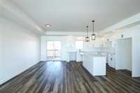 Welcome to another beautiful quality build by Abrams Construction! This 1,163 sq. ft. 2-bedroom, 2-bath home is thoughtfully designed with modern finishes and a bright, open-concept layout perfect for everyday living. Enjoy great curb appeal with a sleek composite exterior and double attached garage, plus a welcoming entry that leads into a sun-filled main living space featuring 9' tray ceilings, a large kitchen island, walk-in pantry, and patio doors to the covered back deck—ideal for relaxing or entertaining.
