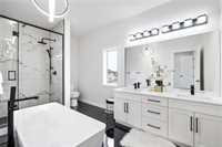 The Master Suite is a true retreat, featuring a spa-like Ensuite with a custom tiled shower, stylish soaking tub, Double Vanity with Quartz Countertops, and heated tile flooring for added comfort. The Modern Kitchen is a chef's dream, showcasing high cabinetry, sleek Quartz Countertops, elegant Backsplash & an under-cabinet lighting. The Great Room offers a Finished Entertainment Wall with a cozy Electric Fireplace, luxury vinyl plank flooring with custom vents, and soaring ceilings that create an open and airy feel. Additional upgrades include oversize windows, enhanced LED lighting, pot lights, a piled foundation, Oversize 3 Car Garage & a huge driveway and approach. Option to Finish the Basement. Nestled in a serene location, surrounded by luxury homes and close to major amenities. Don’t miss this incredible opportunity to build your Dream Home! ACT QUICKLY TO SELECT THE FINISHES YOU WANT.