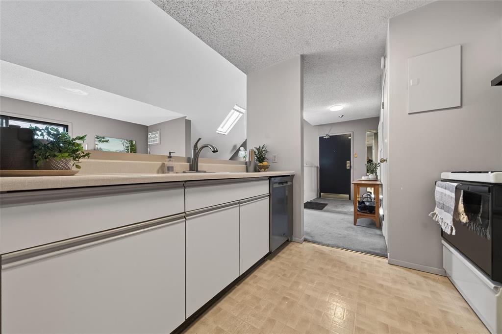 SS Sat Mar 14th Offers left open for 24 hrs pls. A truly architecturally striking top-flr condo in the heart of St. Boniface. This bright & airy unit features soaring vaulted ceilings & a dramatic open-to-above design that creates a sense of space rarely found in condo living. 2 skylights & lge south-facing windows fill the unit with beautiful natural light throughout the day highlighting the open-concept LR & DR areas. The thoughtfully designed layout offers a seamless flow between the kitchen, DR, & LR spaces – perfect for everyday living or hosting friends. A 2nd-flr loft overlooks the main level providing a flexible space ideal for a home office, reading nook, or creative studio. The main flr includes a lge primary bdrm, convenient in-suite laundry, & access to a sunny front balcony – perfect for morning coffee or evening relaxation. The warm architectural lines, elevated ceilings, & unique lofted design make this home feel both modern & inviting. Located in one of Wpg’s most walkable neighbourhoods, you’re just steps from cafes, restaurants, parks, & the charm of St. Boniface. Pet-friendly with 1 outdoor parking spot, this condo is a rare find for buyers looking for something a little different!