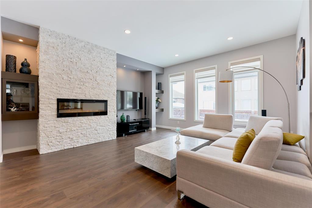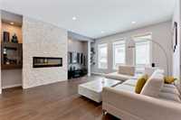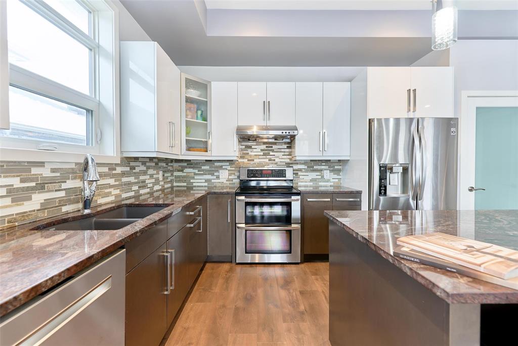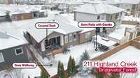 ss now offers will be dealt with within 48hrs of receipt. A 1600 sqft raised bungalow with an insulated double garage custom-built by KDR Homes in Bridgwater Forest offers a total of 5 bedrooms,3 full bathrooms and lots of upgraded features. A spacious foyer offers tile floor with a walk-in closet. Main floor features a combination of 9 &10 ft ceilings. Living room features multiple windows, a fireplace & entertainment unit with stone surrounds and built-in cabinets. The kitchen is loaded with 2-toned thermofoil cabinets, a central island, granite counters, backsplash & 2 pantries. The dining room offers oversized windows and garden doors that lead to a fully fenced & beautifully landscaped yard featuring a covered deck, stone paver sidewalk & patio, plus a fountain. The principal bedroom features double walk-in closets, a deluxe ensuite w/double sinks, granite countertops, a freestanding tub & tiled shower. The basement has 9ft ceiling and is fully finished with a huge rec room, 3 additional bedrooms with bi-level windows, a full bathroom and a laundry room. The subject property is located on one of the most strategic streets in Bridgwater Forest. Call today.