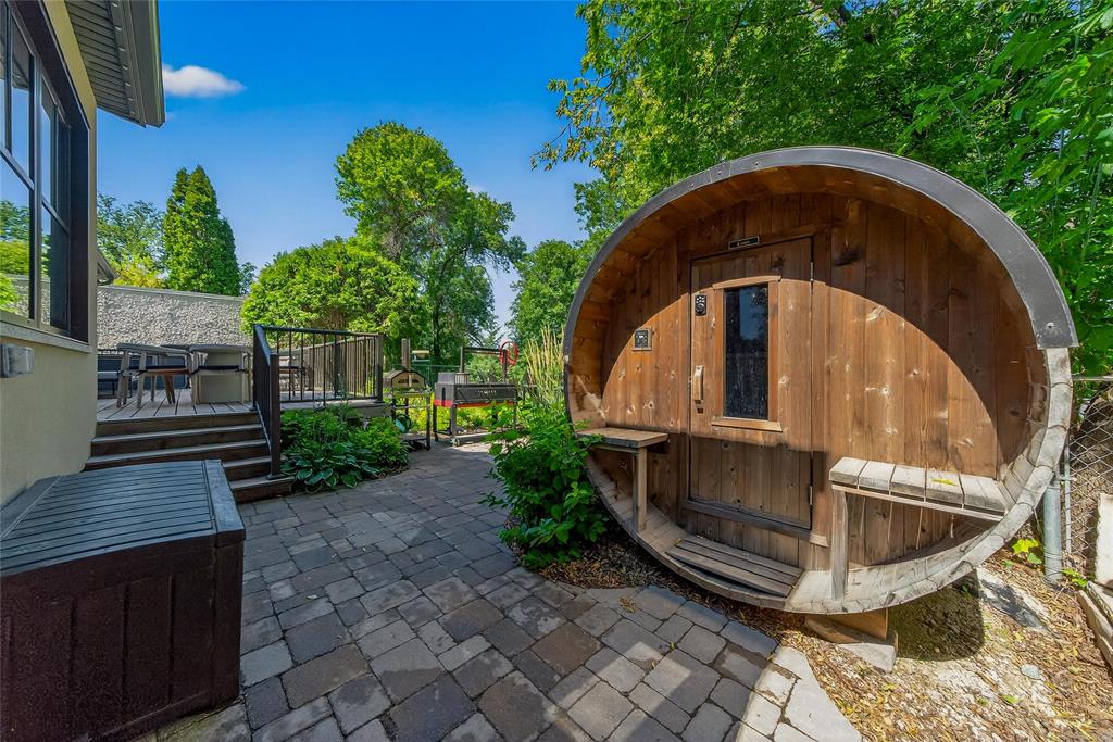 Welcome to a once-in-a-lifetime riverfront residence in one of Winnipeg’s most picturesque, sought-after enclaves. Surrounded by the Red River on a leafy peninsula, this spectacular top-to-bottom luxury rebuild (on piles) blends the charm of a heritage home with the elevated finishes of a brand-new custom build. The Rosehill millwork kitchen is a showstopper with an appliance garage, integrated fridge and stove, hot water on demand, spice pullout, & incredible details. A four-season sunroom with river views, and just steps out to your hot tub & sauna, invites slow mornings and inspired workouts, while the cozy living room, with custom fir wood details and a new wood-burning fireplace, anchors the main floor. Main flr powder room, office w/ murphy bed, & laundry elevate the space. Upstairs enjoy thoughtful sight lines, dual walk-in closet, a stunning spa-like ensuite + steam shower, plus two more bdrms. The fully re-engineered lower level offers an egress bdrm, new mechanicals incl HRV, heat pump, concrete floor, weeping tile & 400-amp service. W/ 2 Tesla chargers & unforgettable outdoor spaces for paddling, dining, & stargazing, this extraordinary home is built to last, & designed to love for decades!