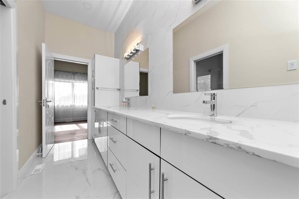 s/s now - offers anytime. Welcome to this 2,550 sq. ft. custom-built bungalow. From the moment you step into the foyer, you are greeted by high ceilings & marble floors that lead into a massive, open-concept living area. The LR features beautiful wide-plank hardwoods & a stunning entertainment wall with a sleek electric fireplace. The chef’s kitchen is a true showstopper, designed w/ high-gloss cabinetry, premium quartz countertops, & a professional gas range. Whether you are hosting formal dinners in the dedicated dining room or large family gatherings in the west-facing sunroom, the home is perfectly designed for entertaining. The thoughtful layout ensures maximum privacy, w/ the primary BR tucked away, featuring a grand walk-in wardrobe & a spa-like 5-piece ensuite. On the opposite wing, 2 generous BRs share a spacious Jack & Jill bathroom with dual vanities, making it ideal for family life. A versatile 4th BR serves as the perfect home office or den for those working from home. Complete with a triple-car garage, composite deck for summer BBQs, & a massive lower level ready for your personal touch, this home offers a sophisticated lifestyle in one of the area’s most prestigious neighbourhoods.