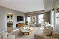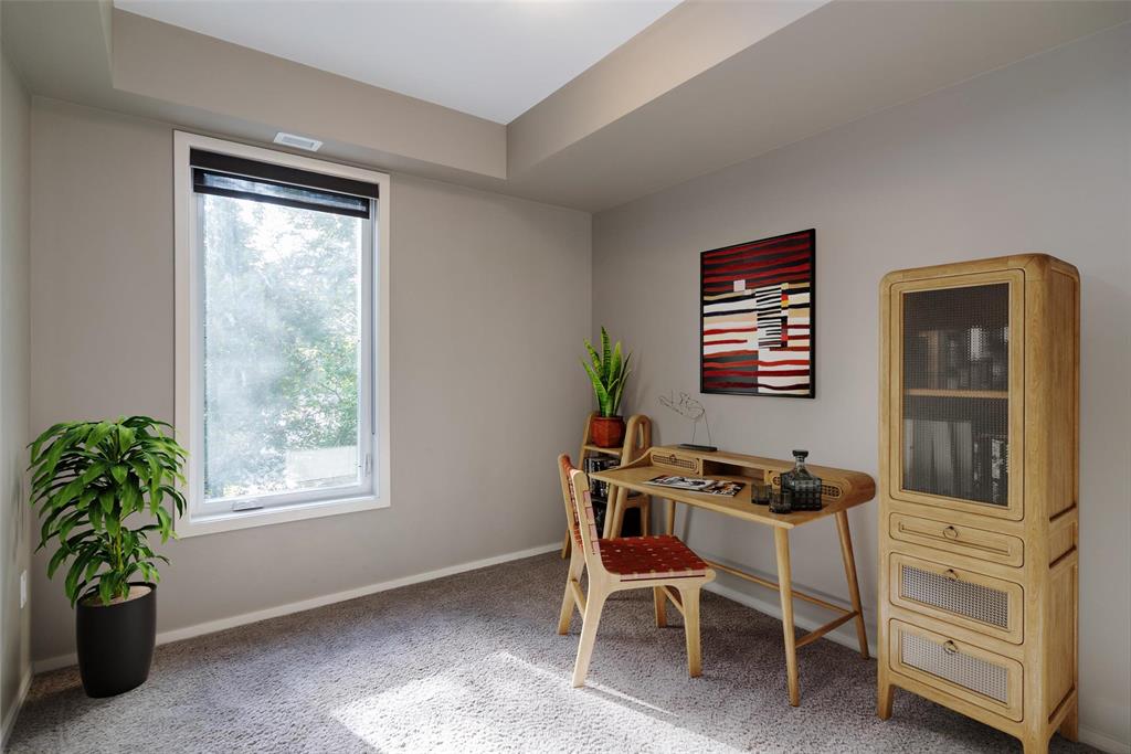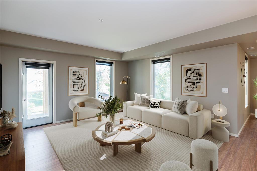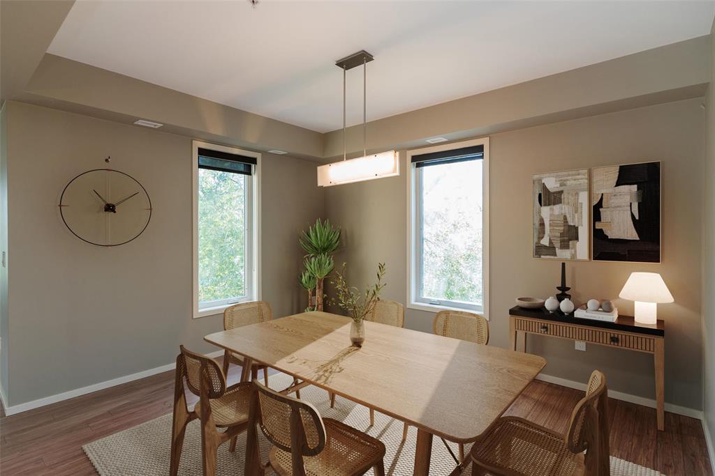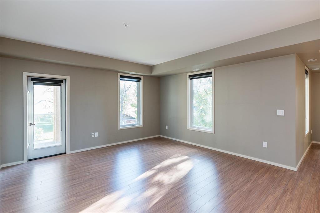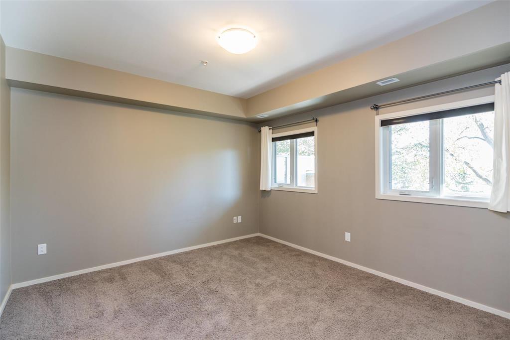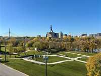 This is the condo you've been waiting for. Incredible 1212 sq ft 2 bedroom, 2 bathroom, pet friendly end unit with east and south facing windows flood the space with tons of natural light. Beautiful kitchen with espresso cabinets, stainless steel appliance and lots of storage. Huge primary bedroom with generous walk-in closet and 4 pc ensuite bath. Spacious great room with direct access to the large private balcony which overlooks a green space. Secondary bedroom is a great size and located on the opposite side of the unit. In-suite laundry room with additional storage. You'll appreciate the heated underground parking plus a storage locker. This well managed condo complex also offers a fitness room, activity room and impressive roof top patio overlooking the Canadian Museum for Human Rights, downtown and the Esplanade Riel bridge. Book your private tour today! Some photos virtually staged.
