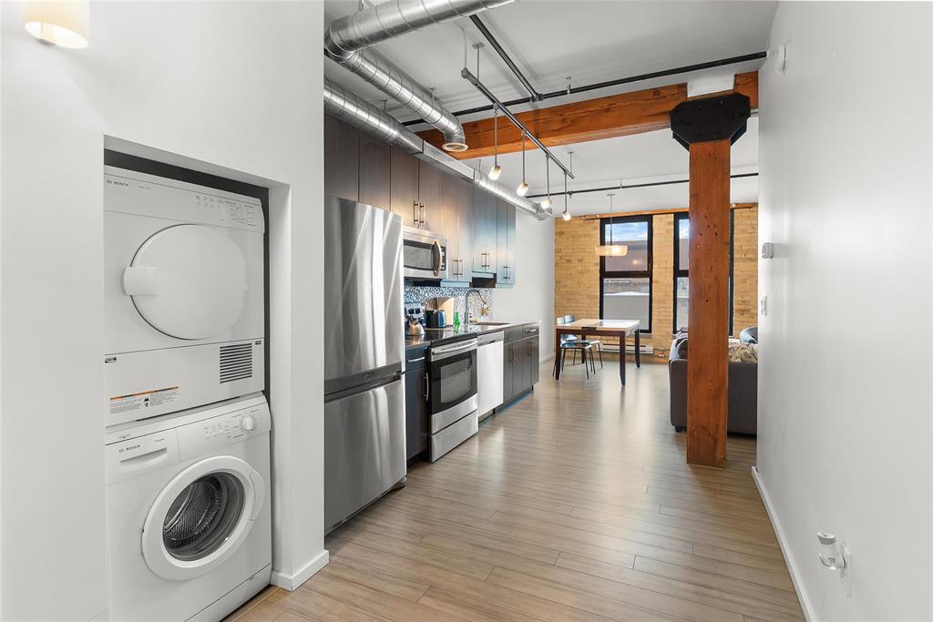 Showings start now, with potential offers reviewed as received* This 1 bed, 1 bath condo in the heart of the Exchange District blends iconic New York–style exposed brick with a bright, open layout designed for elevated city living. Thoughtfully laid out with in-suite laundry, this space is equal parts stylish and functional. Steps from the river, curated local restaurants, coffee shops, and boutiques, this home is perfect for those who value walkability, culture, and a refined urban lifestyle—without sacrificing character.