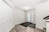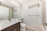 Welcome to this custom-built two-story home in the heart of Sage Creek. The classic front elevation showcases smooth acrylic stucco complemented by cultured stone accents, creating timeless curb appeal. Step inside to a spacious foyer with a large walk-in closet, setting the tone for the well-planned layout. The bright and airy great room is flooded with natural light, perfect for everyday living and entertaining. A separate eat-in kitchen offers privacy and functionality—ideal for the family chef. A main-floor bedroom conveniently located next to a full bathroom provides excellent flexibility for guests or multigenerational living. Upstairs, the open loft area is perfect for a home office or entertainment space. This level features three generously sized bedrooms serviced by two full bathrooms. The primary bedroom boasts a private ensuite with a premium tiled shower. The fully finished backyard is ready for summer enjoyment, featuring a composite deck, large patio, and firepit—perfect for hosting and relaxing. This home is loaded with premium finishes including quartz countertops, tiled showers, tri-pane windows, laminate flooring, and an insulated garage.