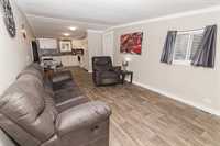 Welcome home! This charming 2-bedroom mobile home boasts numerous renovations and modern updates from start to finish, perfect for managable, comfortable living. Step inside to a spacious entranceway that doubles as a functional laundry area, blending convenience with design. The bright, open layout invites you to relax and unwind. Picture yourself enjoying mornings or cozy evenings in the delightful front porch sitting area, ideal for sipping coffee or greeting guests. Don't miss out on this beautifully updated property with space in the partially fenced yard to enjoy—a perfect blend of everything for starting out or relaxing in retirement!