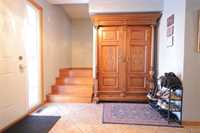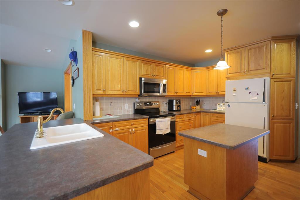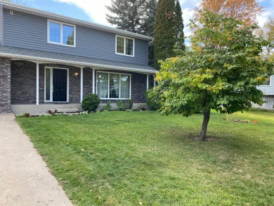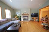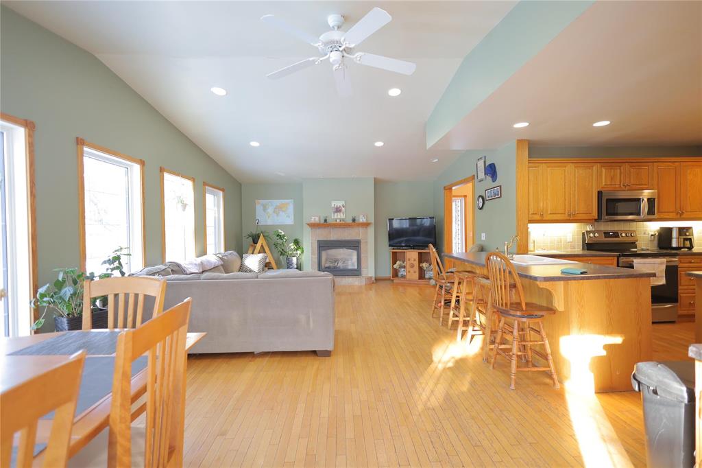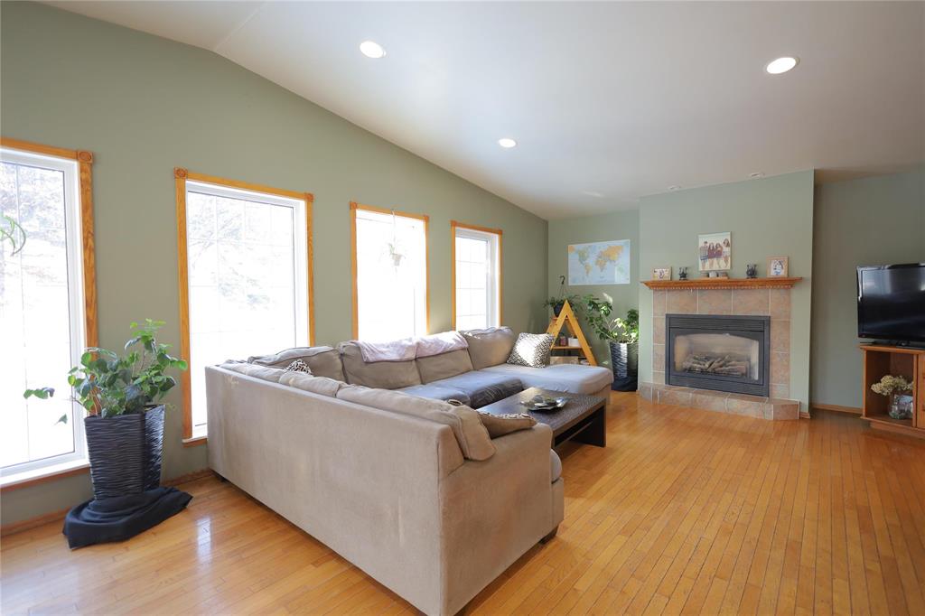 Welcome to this warm and inviting two-storey home set on a large pie-shaped lot in a desirable cul-de-sac location. The main floor features a tiled front entry accented by an antique armoire, leading into a bright great room with vaulted ceilings, expansive windows, and a cozy fireplace. Hardwood flooring flows throughout the main living areas. The spacious oak kitchen offers abundant cabinetry, a convenient peninsula, a formal dining room, front parlor, and main-floor laundry. A well-appointed 3-piece bath completes this level.