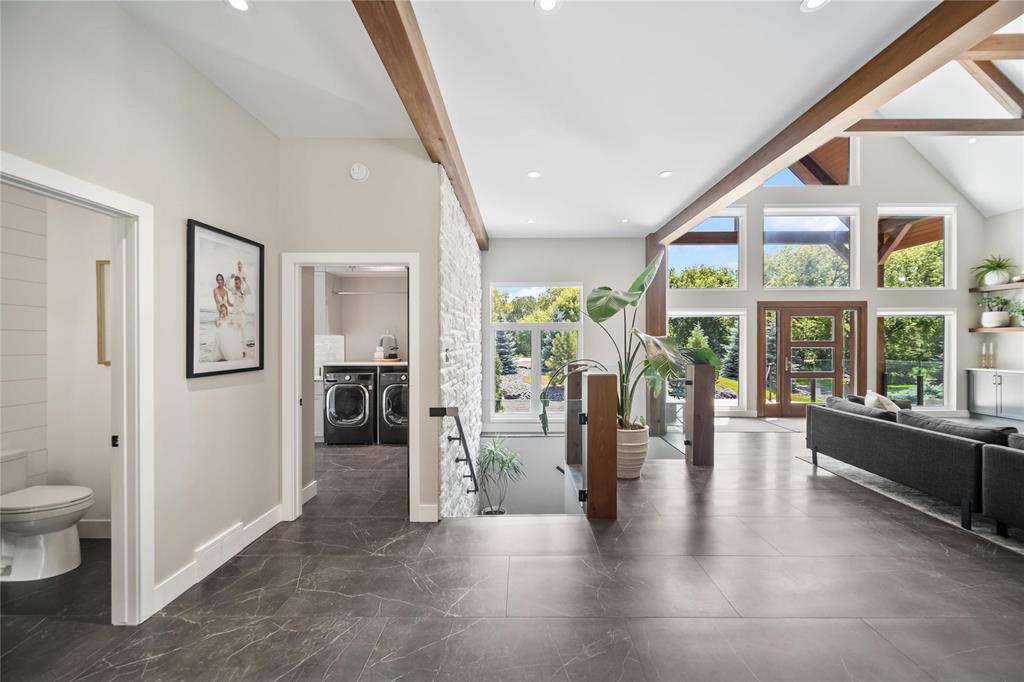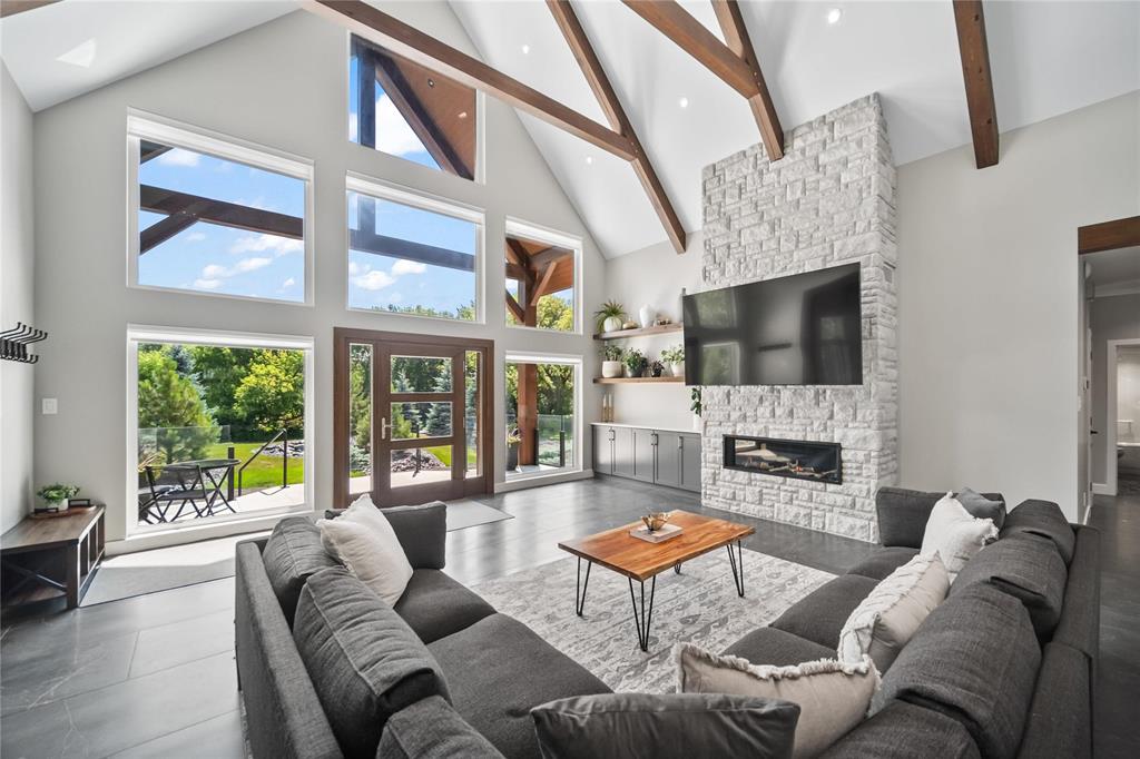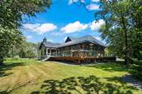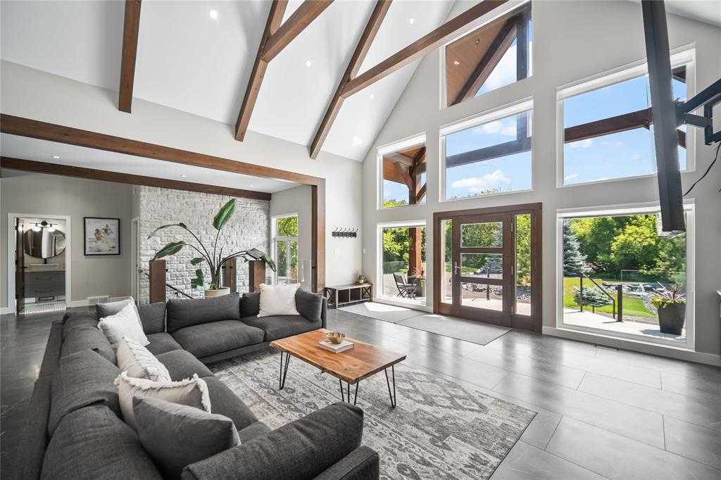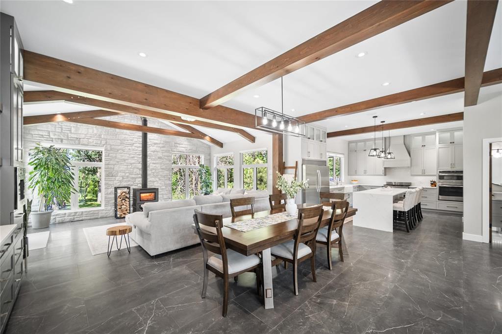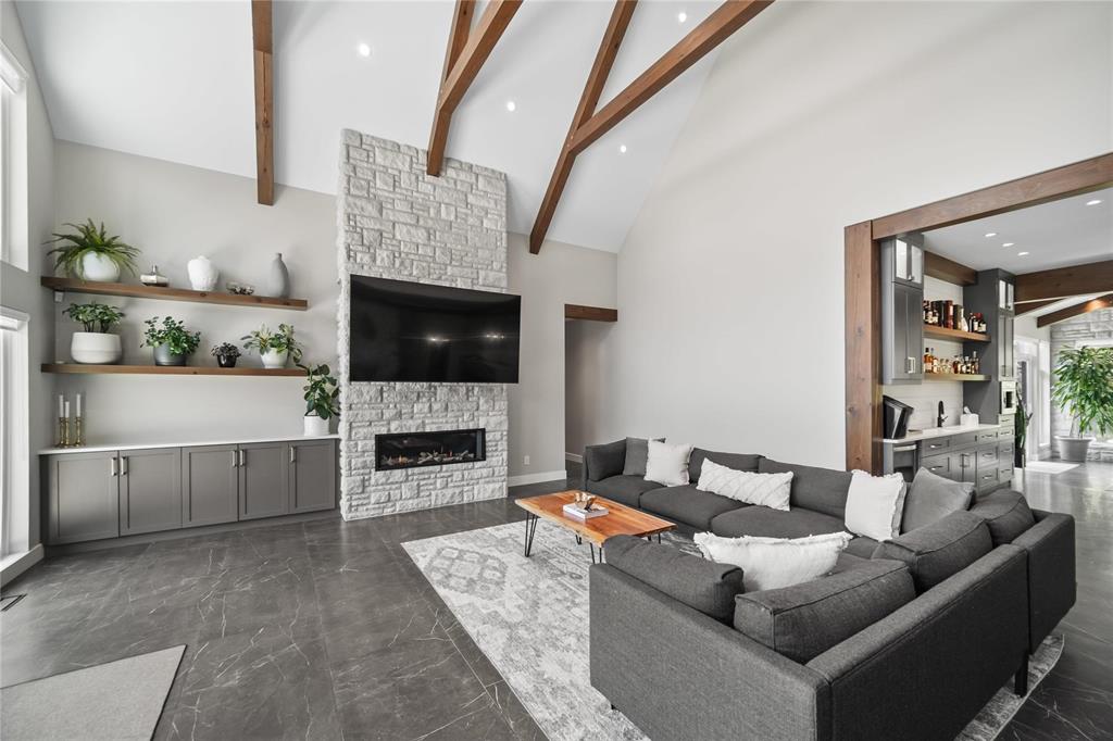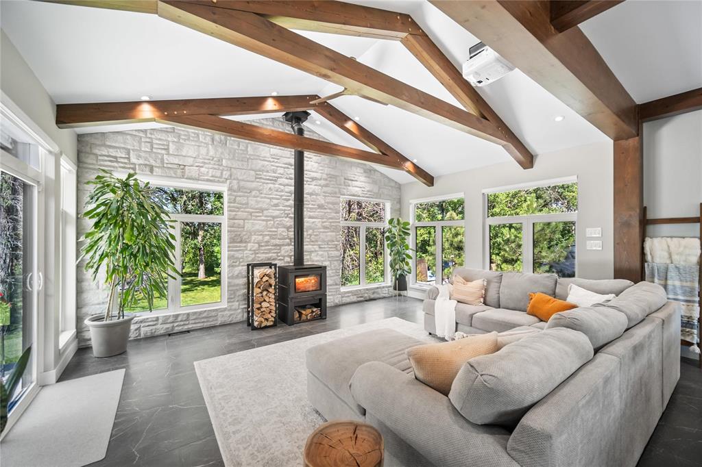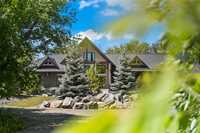 Experience luxury living in this stunning 2736 sq ft executive bungalow, perfectly nestled on a beautifully treed acreage just minutes from local amenities. Built in 2021, this exceptional home offers the perfect blend of craftsmanship, comfort, and modern convenience. Featuring 6 spacious bedrooms and 4 bathrooms, there’s room here for the whole family — and then some. Step inside to soaring ceilings, exposed timber beams, and expansive windows that flood the home with natural light while framing serene views of nature. The open-concept living space is ideal for entertaining, complete with a chef-inspired kitchen, elegant dining area, and inviting great room centered around a gorgeous feature fireplace. The primary suite offers a peaceful retreat with a spa-like ensuite and generous walk-in closet. A fully developed lower level provides even more living space with additional bedrooms, bathrooms, and room for recreation or hobbies. Outside, the private, park-like setting is a true escape, with mature trees, manicured grounds, and ample space for outdoor enjoyment. This is a rare opportunity to enjoy acreage living without gravel & sacrificing proximity to schools, shopping, and everyday conveniences.