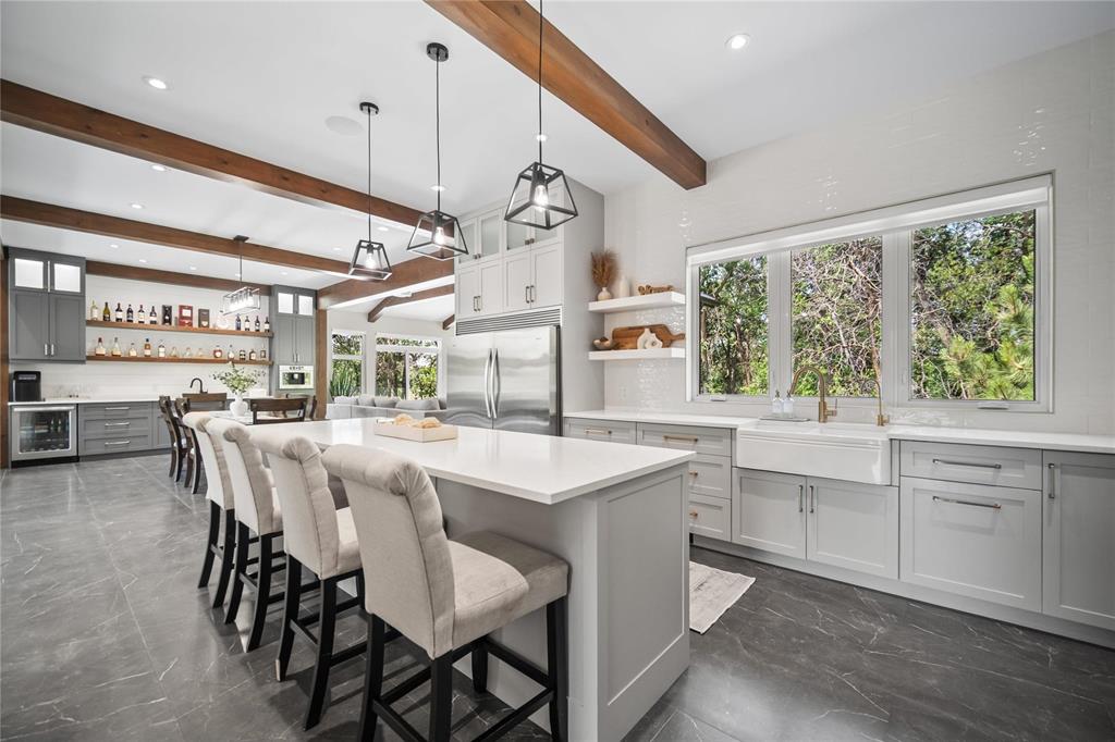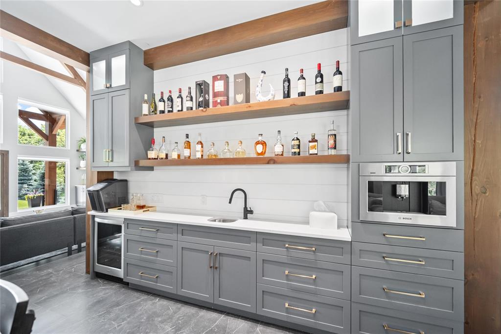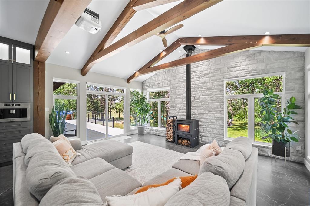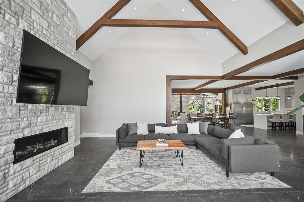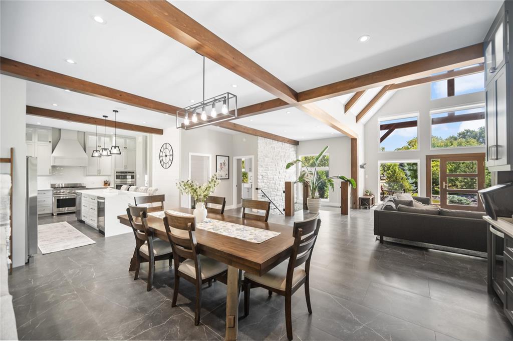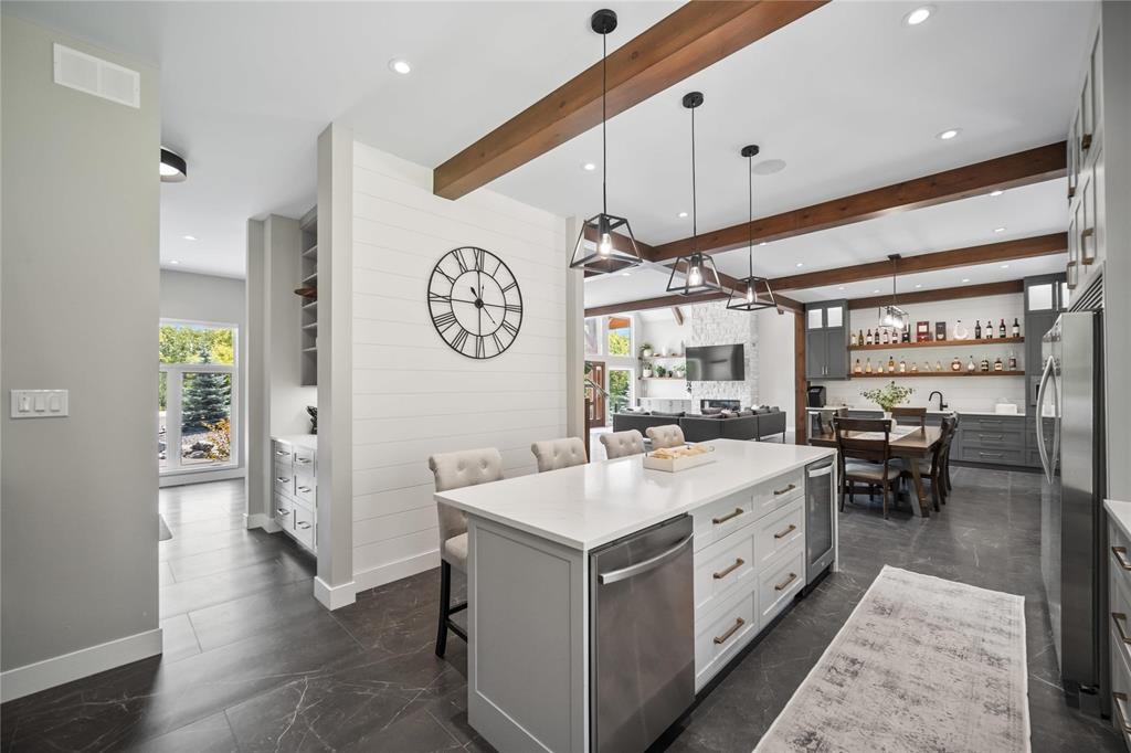 Experience luxury living in this stunning 2736 sq ft executive bungalow, perfectly nestled on a beautifully treed acreage just minutes from local amenities. Built in 2021, this exceptional home offers the perfect blend of craftsmanship, comfort, and modern convenience. Featuring 6 spacious bedrooms and 4 bathrooms, there’s room here for the whole family — and then some. Step inside to soaring ceilings, exposed timber beams, and expansive windows that flood the home with natural light while framing serene views of nature. The open-concept living space is ideal for entertaining, complete with a chef-inspired kitchen, elegant dining area, and inviting great room centered around a gorgeous feature fireplace. The primary suite offers a peaceful retreat with a spa-like ensuite and generous walk-in closet. A fully developed lower level provides even more living space with additional bedrooms, bathrooms, and room for recreation or hobbies. Outside, the private, park-like setting is a true escape, with mature trees, manicured grounds, and ample space for outdoor enjoyment. This is a rare opportunity to enjoy acreage living without gravel & sacrificing proximity to schools, shopping, and everyday conveniences.