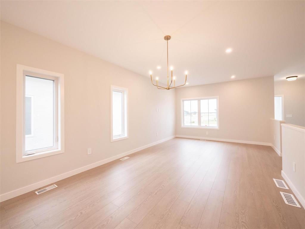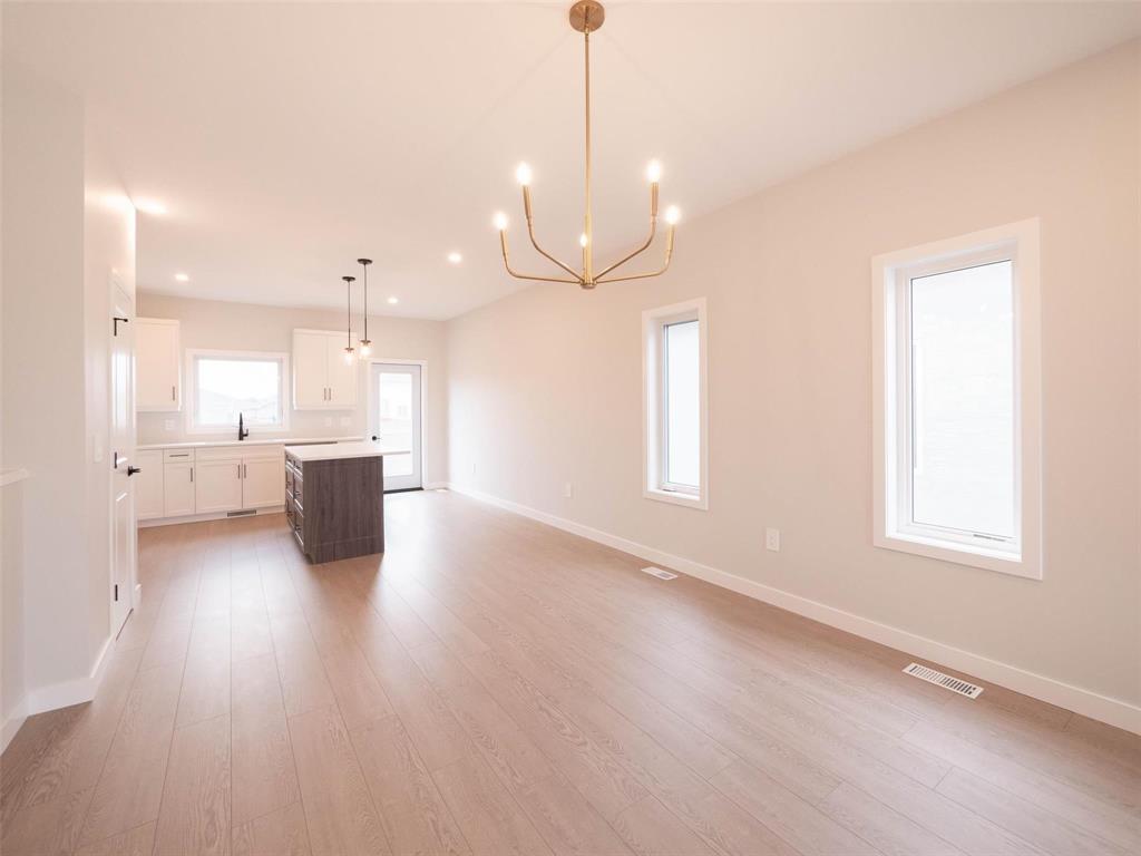 Showings Start Now, Offers Anytime! Built by Connection Homes! Welcome to 33 Gleneagles Street in the The Highlands, Niverville MB's most desirable new development! This 1392 SqFt Bungalow has a fantastic floor plan & is the perfect starter, downsize or family home! As you enter, you are greeted by a large front foyer w/ample coat closets & access to the double-attached garage! 9ft main floor ceiling, Large living/dining room, perfect for the growing family & entertaining! The kitchen offers tons of counter space w/quartz countertops, custom cabinets with soft close hardware, a food storage cabinet tower/pantry, large island, & more! LED potlights inside & outside. 3 large bedrooms incl the large master bedroom w/walk-in closet & 3-pc ensuite bath! The price includes the lot, GST, concrete driveway & walkway, central air, built on piles & more! Situated on a south-facing backyard lot w/developer fence installed at the back + green space on the other side!