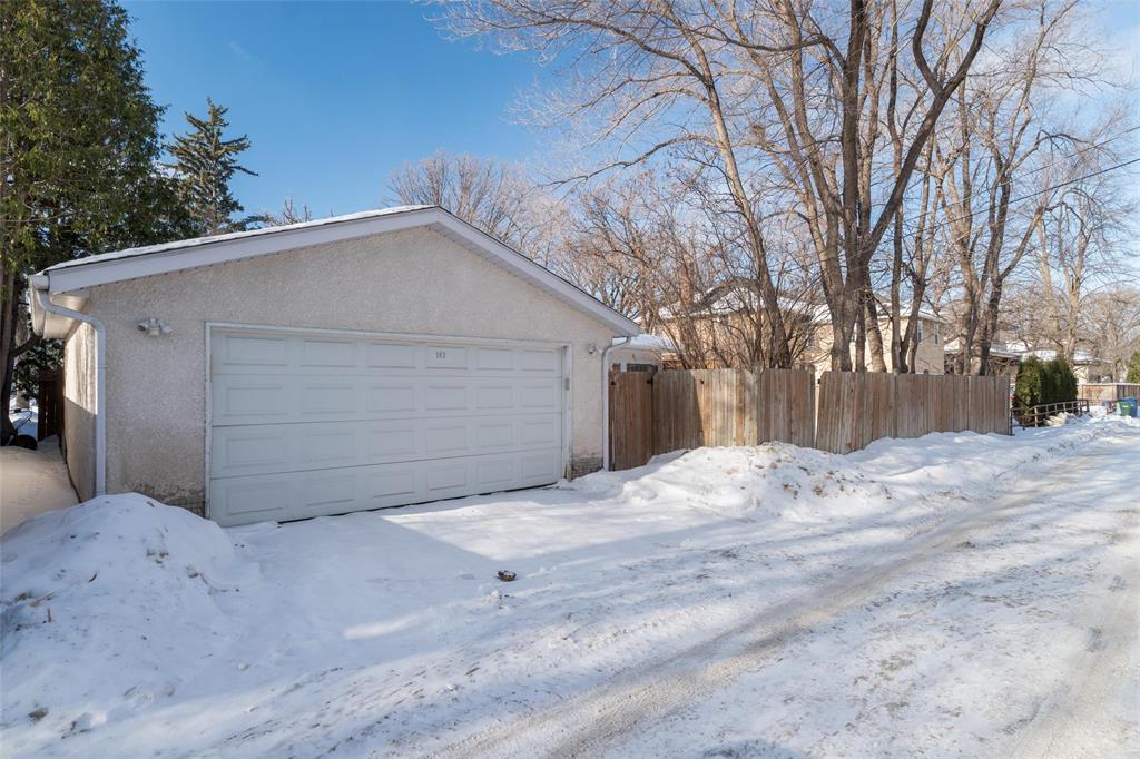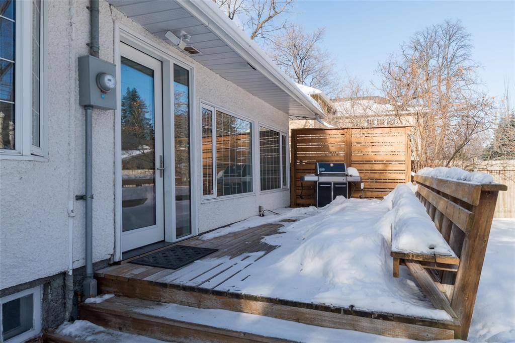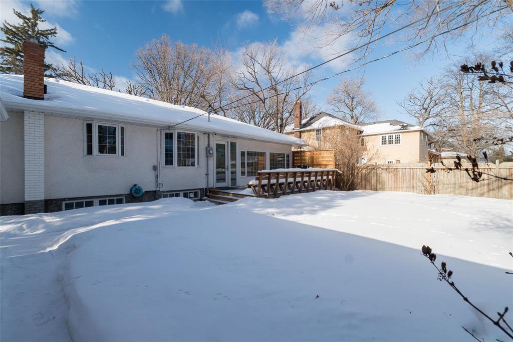 Situated on a fabulous 75’ x 120’ lot between Wellington Crescent and Academy Road, this mid-century modern bungalow offers an opportunity to customize, renovate, or build your dream home in one of Winnipeg’s most sought-after neighborhoods. Within steps of great local restaurants and shops, as well as the beautiful walking path on Wellington.This architecturally distinct home is filled with unique touches, from its original mahogany feature wall with built-in niches and gas fireplace that anchors the expansive living and dining areas. Wall to wall picture windows provide abundant natural light. The functional kitchen offers granite counters, white cabinetry, stainless steel appliances, and a breakfast nook that views to the sunken family room. From here, garden doors lead to a rear deck with built-in bench seating. Additional features include: hardwood floors, renovated ensuite bath with walk in shower and deep soaker tub, fully finished lower level with a large rec room, additional bedroom and a third bathroom, a double detached garage, central air conditioning, and updated electrical.