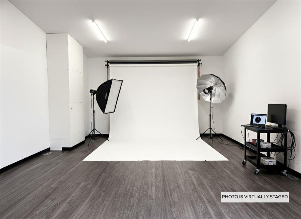 This versatile two-level, open-concept space could be the perfect solution. Ideal for a studio, office space, golf simulator, or expanding home-based business, the layout features soaring ceilings (2nd floor), loads of natural light and the flexibility of two distinct levels, allowing you to create separate functional areas tailored to your needs. Floor heat on the main floor plus forced air furnace with A/C on both levels. Add a wet bar or kitchen on the 2nd level with plumbing in place. Fibre Internet is available.