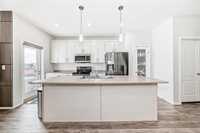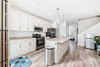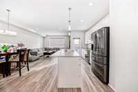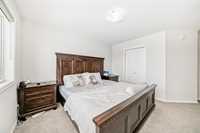 Main floor features spacious foyer with walk-in coat closet, 2-piece powder room, and open kitchen, dining, and great room ideal for daily living and entertaining. Kitchen showcases oversized 8’ island with breakfast bar, pendant lighting, pot lights, pantry, and stainless steel appliances. Large picture windows provide excellent natural light.