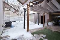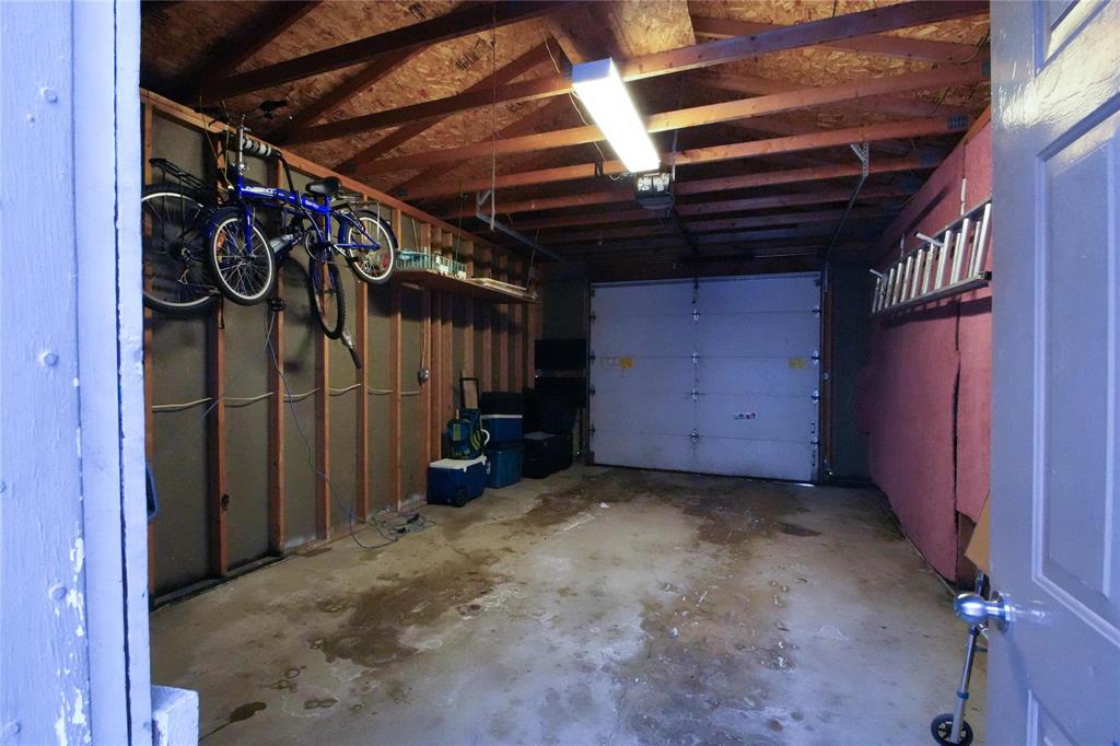 The fully fenced yard & a single detached garage, offering both parking & extra storage.