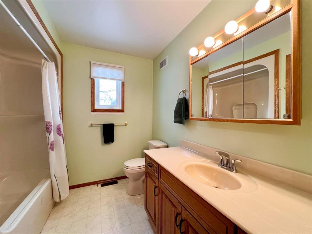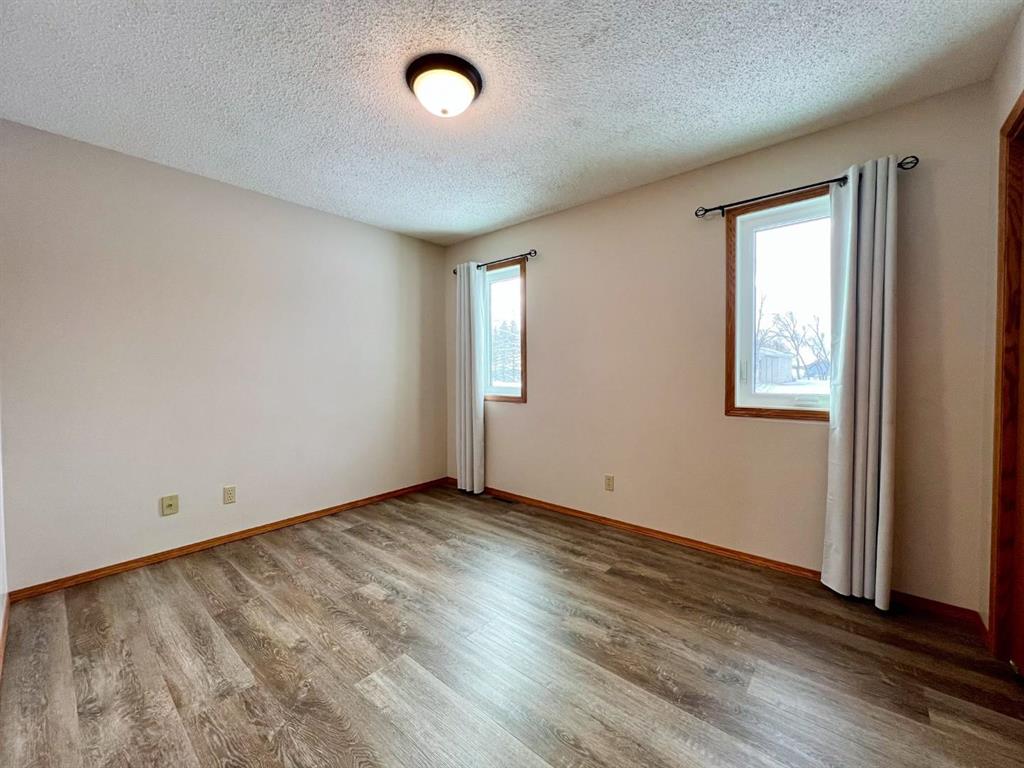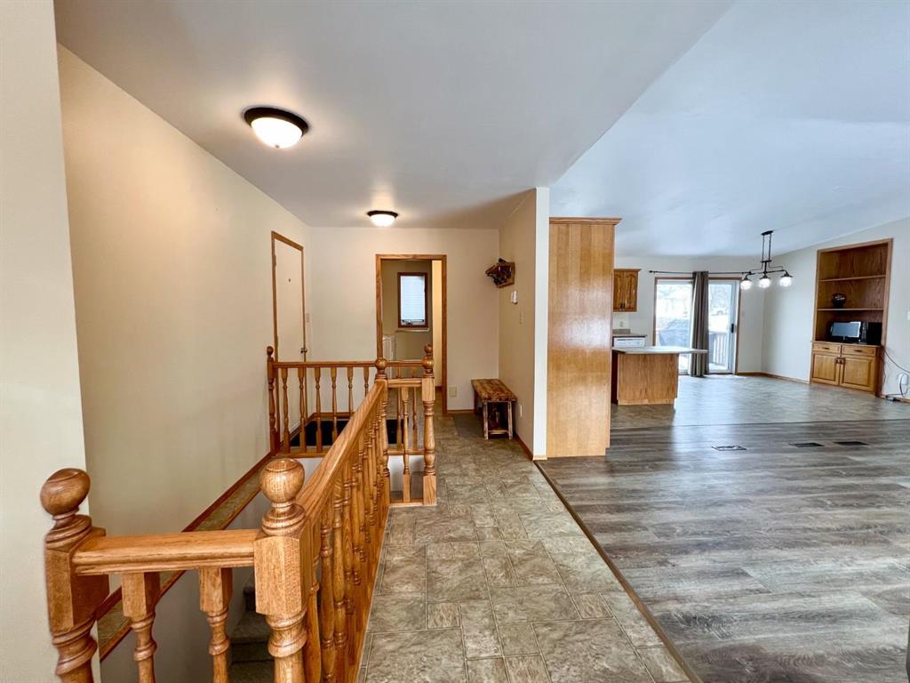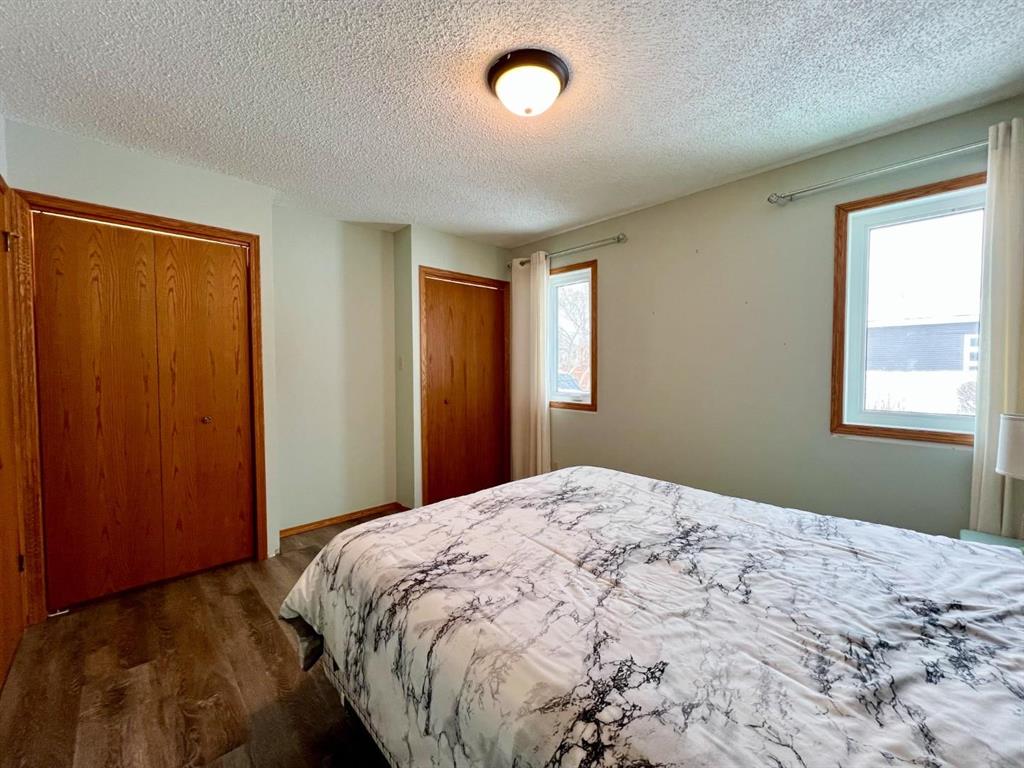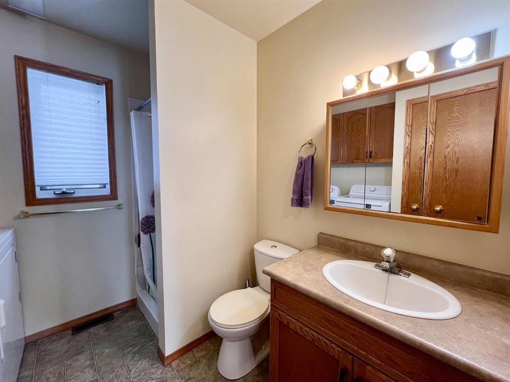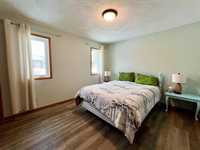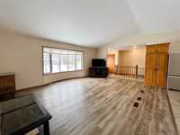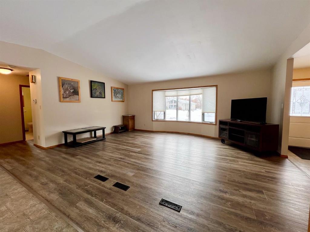 Welcome to this open-concept 1,262 sq ft bungalow situated on a large corner lot. The main floor offers two comfortable bedrooms, convenient main-floor laundry, and two full bathrooms. The bright kitchen, dining, and living areas create an inviting space for everyday living and entertaining. The fully finished basement features a spacious family room, two additional bedrooms, and a three-piece bathroom—ideal for growing families or guests. An oversized, insulated double garage provides ample room for vehicles, storage, or a workshop and includes built-in storage and paved driveway. A two-tier deck off the dining room, perfect for enjoying the outdoors. Recent updates include new windows in the kitchen, main-floor bedrooms, and bathroom, as well as a new steel entry door. Additional upgrades include a newer air conditioner, fridge, stove, and washing machine. A well-maintained home offering space, functionality, and comfort inside and out.