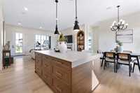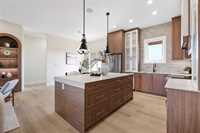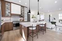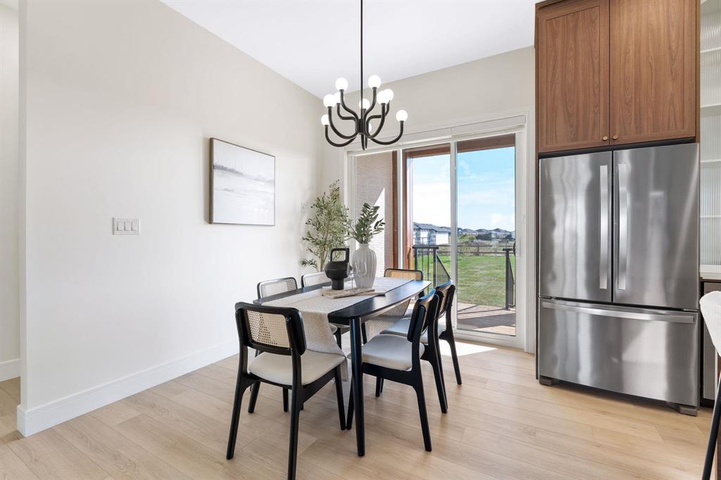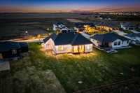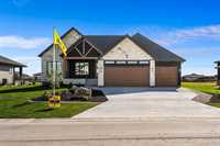 Stunning 1,768 SQFT bungalow offering refined open-concept living with 3 bedrooms, 2 full baths, and a versatile main floor flex room/office. Soaring 10’ ceilings and 8’ doors throughout create a grand, airy feel. The living room features a custom arched entertainment unit with tile detail and gas fireplace. The primary suite boasts a deluxe ensuite with 5’x3’ tiled shower, custom glass door, soaker tub, double vanity, and Kohler fixtures. The chef’s kitchen showcases ceiling-height cabinetry, soft-close drawers, dekton countertops, and tiled backsplash. Luxury vinyl plank flooring runs thro throughout, with tile in the foyer and ensuite. Built with 16” OC engineered I-joists, piled foundation, steel beam, 9’ foundation walls, and upgraded roof pitch. Exterior highlights include triple-pane black windows, acrylic stucco, cultured stone, covered front porch, and huge rear covered deck . All this and so much more! Catch the school bus right outside your door, less 5 minutes to city limits, Call now for your own private tour. SHOW HOME HOURS MON-THURS 5-8PM SAT&SUN 1-5PM