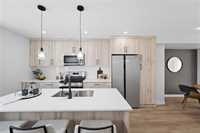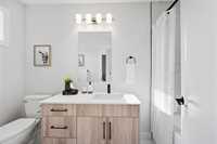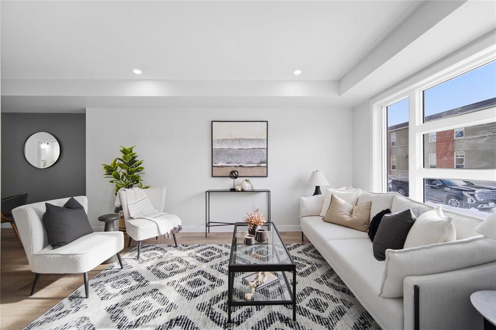 Showings start now offers presented as received. Welcome to this striking new two-storey 1310 SF home at ½–223 Royal Ave built by Evolution Homes. This home has been thoughtfully engineered with TJI floor systems, LVL construction and 8’ ceilings on every level, this home blends durability with contemporary appeal. The exterior showcases James Hardie Lap siding broad and batten siding finished with an acrylic stucco front. Inside, enjoy the open concept flowing from foyer, living, dining and kitchen areas, flooded with potlights & modern black pendant light fixture & hardware. The kitchen features custom thermofoil cabinetry to the ceiling, quartz countertops, tiled back splash & s/s appliances. A sleek powder room rounds out the main level. Upstairs are 3 bedrooms, a 4piece bath & the primary bedroom offers a stunning tile shower 3 piece ensuite & walk in closet. All 3 baths offer quartz countertops & undermount sinks. The basement is ready for future development with rec room space, existing laundry, bedroom potential, bathroom rough-ins & egress windows. A back landing, basic landscaping & gravel parking pad are to be included. Protected by Manitoba New Home Warranty & Evolution Homes Warranty.