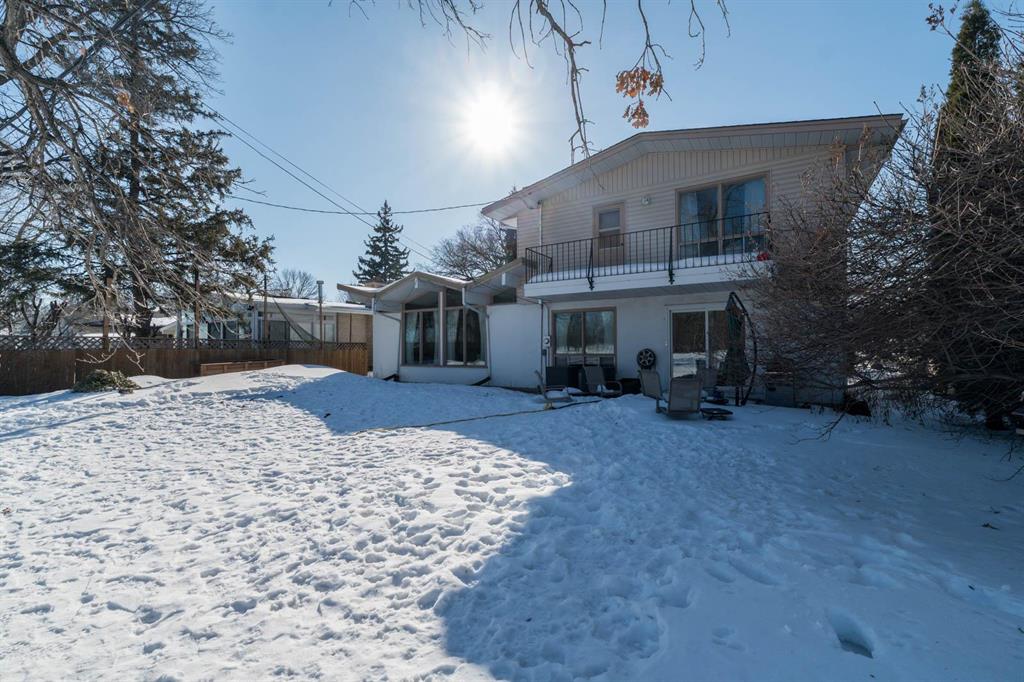 603 Roberta offers an impressive 2,356 sq ft of thoughtfully designed living space in a sought-after location backing onto Rossmere Golf Course. This well-appointed home combines generous square footage with a functional layout, making it ideal for growing families and those who love to entertain.The main floor features a sun-filled living room, a large kitchen with loads of cabinetry and generous counter space, a separate formal dining area, and a welcoming family room highlighted by a stunning gas fireplace—perfect for everyday living and entertaining. The upper level offers 4 bedrooms and 2 bathrooms, providing a comfortable and functional family layout. The fully finished basement includes a spacious rec room, 2 additional bedrooms, and a versatile den, ideal for a home office, gym, or guest space. Step outside to a stunning backyard overlooking Rossmere Golf Course, offering peaceful views and a beautiful setting to relax or entertain. A rare opportunity in an unbeatable location—don’t miss this one!