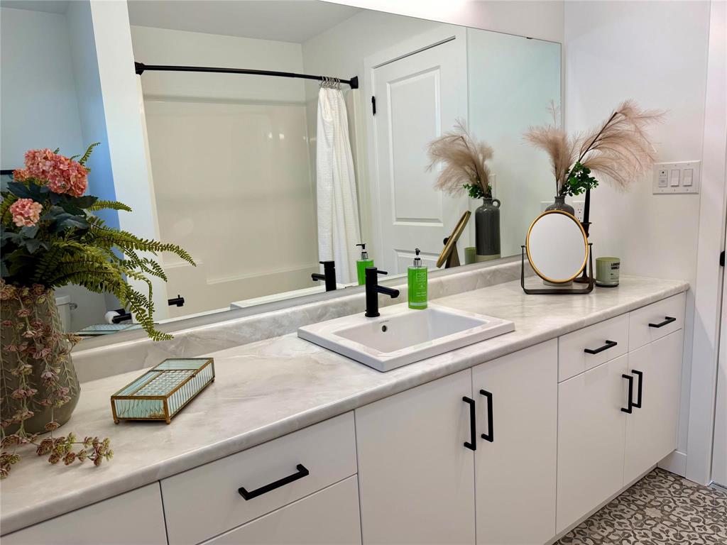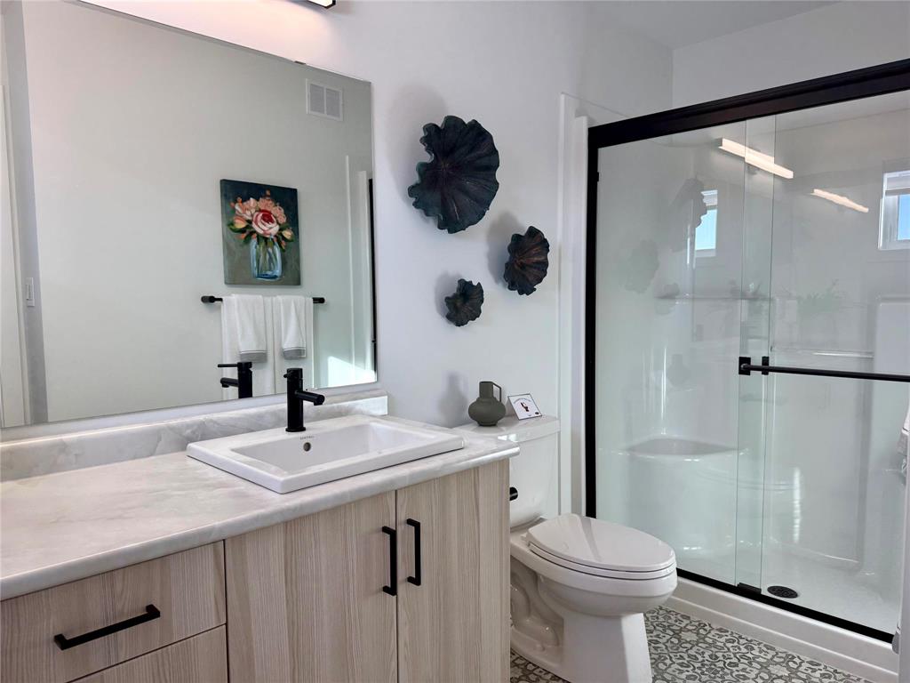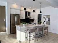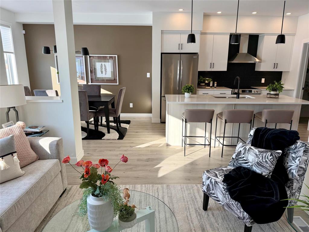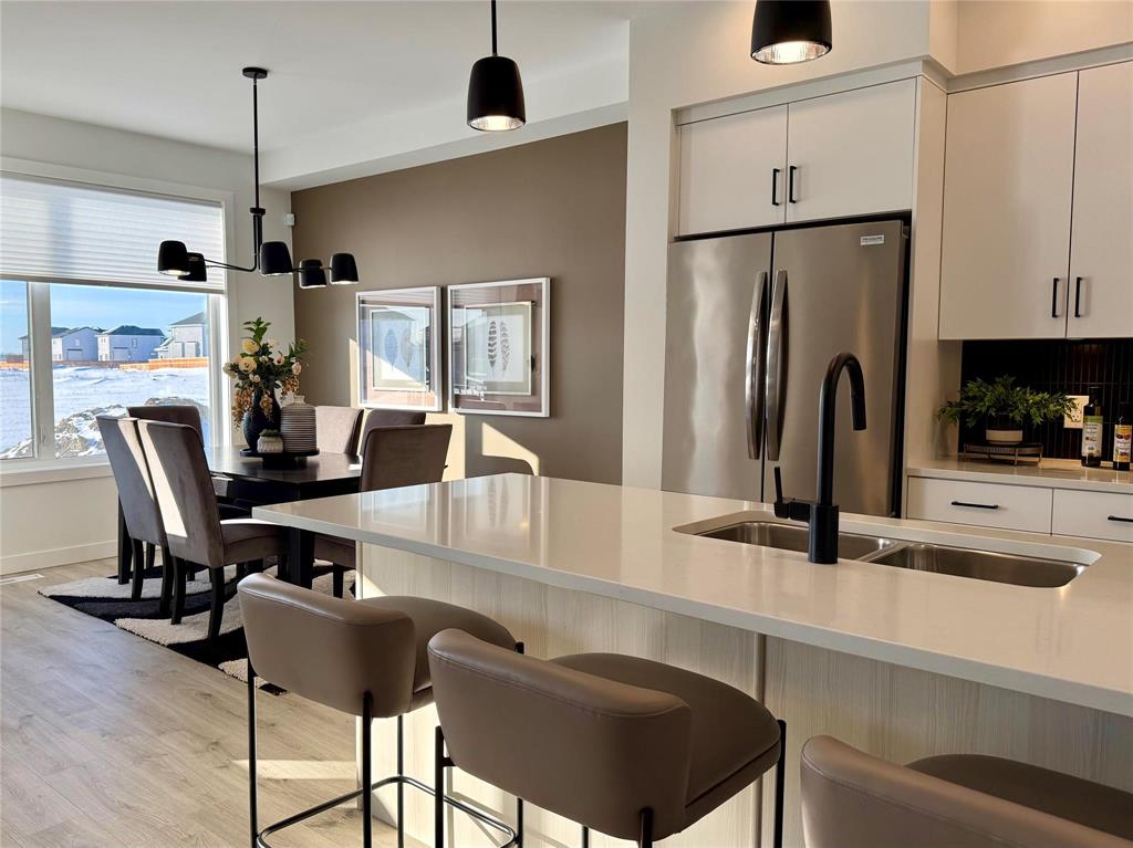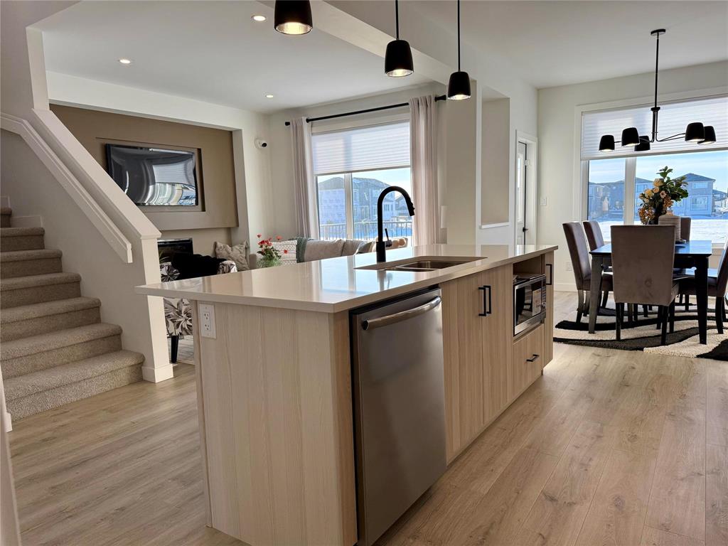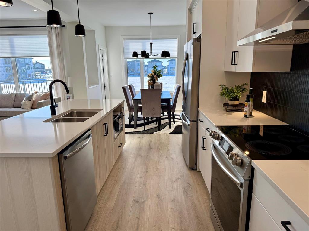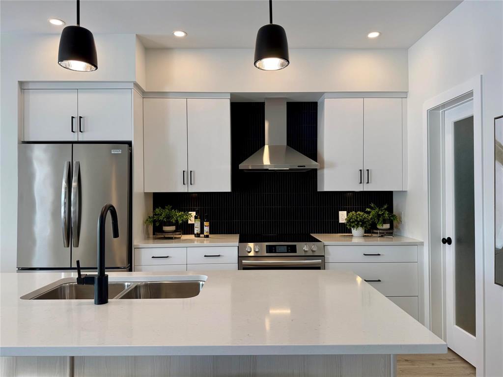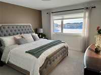 SHOWHOME stunner, APRIL possession! Rare LOOKOUT park lot. Crisp white, sharp black detail, designer accents that include a FP feature wall anchoring the Great Room space. Slick QUARTZ countertops, contrasting backsplash, stainless steel appliances and CHIMNEY HOOD fan, as well as under cabinet lighting for subtle evening illumination, and a generous walk-in pantry with frosted glass door. Lustrous laminate flooring throughout the main floor. GEMSTONE lighting, alarm. Entertain with ease this summer on your back DECK, enjoying sunset views. Fully landscaped with sprinklers. High EFFICIENCY LENNOX furnace, TRIPLE PANE CASEMENT windows, LED lighting make this home 24% MORE ENERGY EFFICIENT than new home standards, and you could qualify for up to 25% rebate on CMHC fees! Easy living upstairs: Huge family bathroom, step-saving UPSTAIRS LAUNDRY, closet organizers, and a perfect study nook. Your primary space overlooks the park, a view that will never grow old. APPLIANCES, custom drapery, added LOOKOUT WINDOWS in the FRAMED basement with side door access. Full landscaping with sprinklers (back yard to be completed in summer). Call your REALTOR and let's get moving!