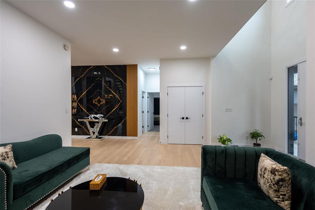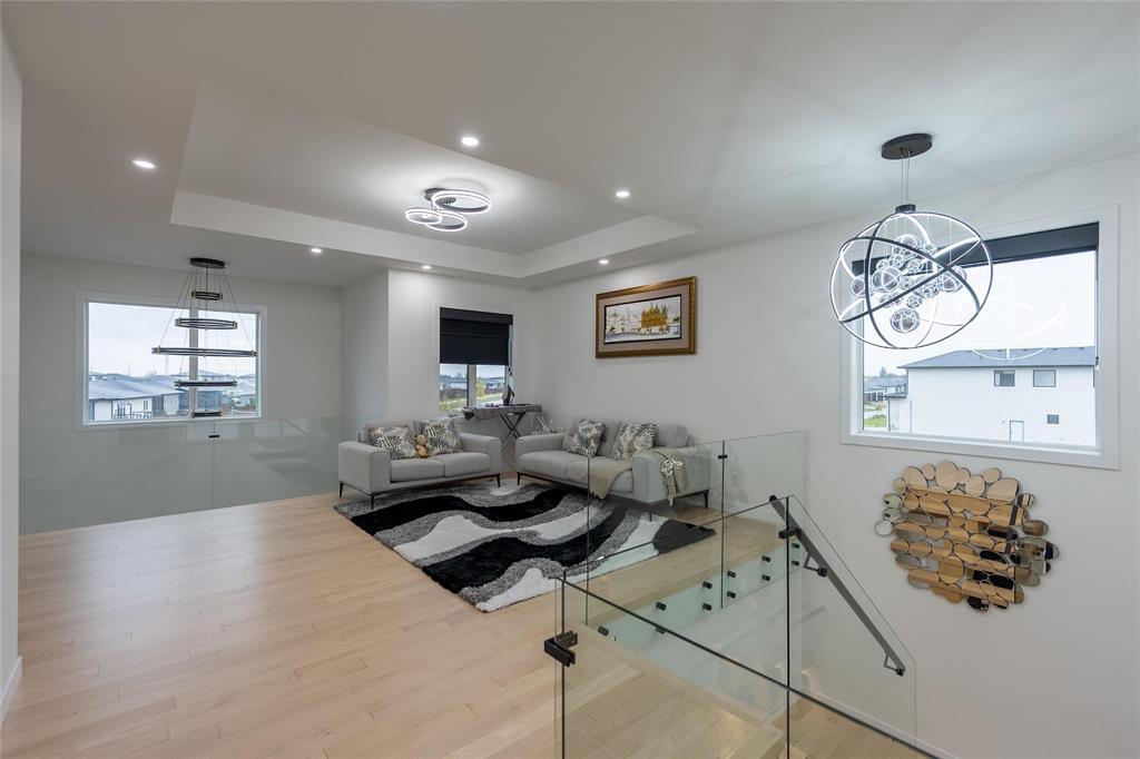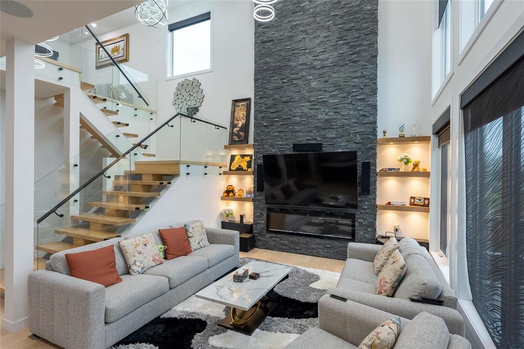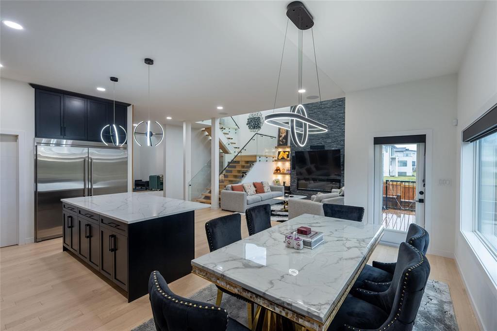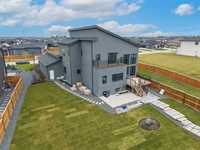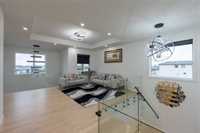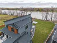 Discover this truly exceptional riverfront home where luxury, comfort, and modern design meet. From the moment you step inside, you’ll be captivated by the bright, airy layout featuring soaring 10’ ceilings and an inviting foyer. The sleek designer kitchen boasts an impressive 8’ island and effortlessly connects to the spacious dining and great room, perfect for gatherings and everyday living. Step out onto the raised deck and take in the peaceful river views that surround you. The main level is completed with a butler's pantry, bedroom, a 4-piece bath, plus a generous mudroom. Upstairs, you'll be greeted by a massive 24’ loft ideal for family time or relaxation. The primary suite features its own private balcony and 5-piece ensuite bath, being the perfect place to unwind. You’ll find two more bedrooms, each with their own walk-in closets and 4-piece ensuites. Downstairs, a spacious rec room with two bedrooms and a full bathroom offers plenty of room for family and guests, while the oversized triple attached garage provides exceptional convenience and storage. Enjoy this home designed to take full advantage of the serene riverfront setting. Photos 31-34 are virtually staged.