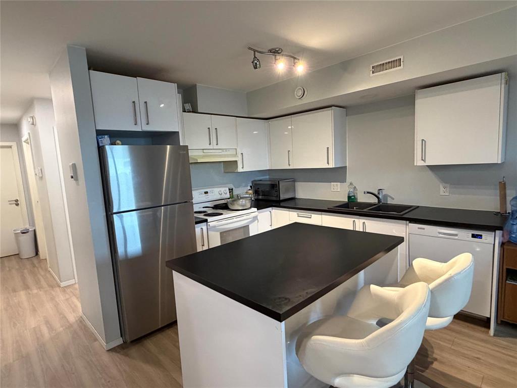 982 sq.ft. 2 bedrooms, 1- 4pcs bathroom condo, located in the lower level. Kitchen and bath contain ultra gloss cabinets with soft closing drawers. The following appliances are included: fridge, stove, dishwasher, washer, dryer. European style high efficiency windows and doors. Large windows for lots of natural light. Laundry is in the apartment. 1 parking space is included, visitor parking. $198 condo fee.